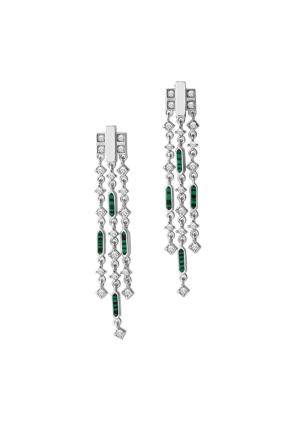 Silver 925 sterling silver dangling earrings with green accents and crystal stones 137