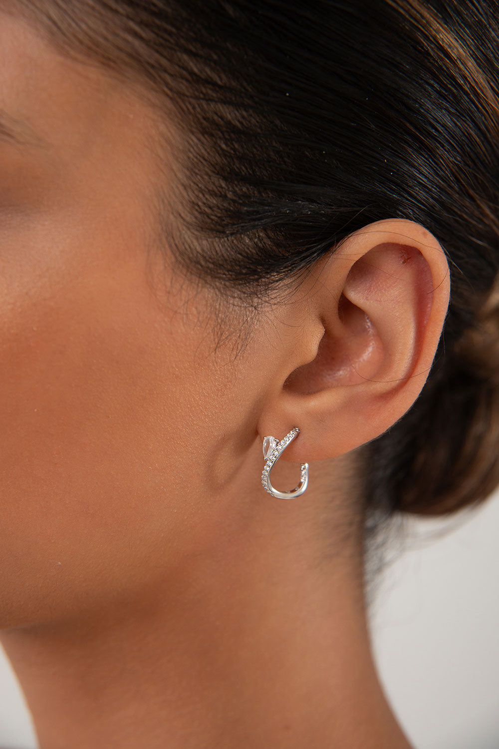 Silver 925 Sterling silver earrings with crystal stones and curved form details 95