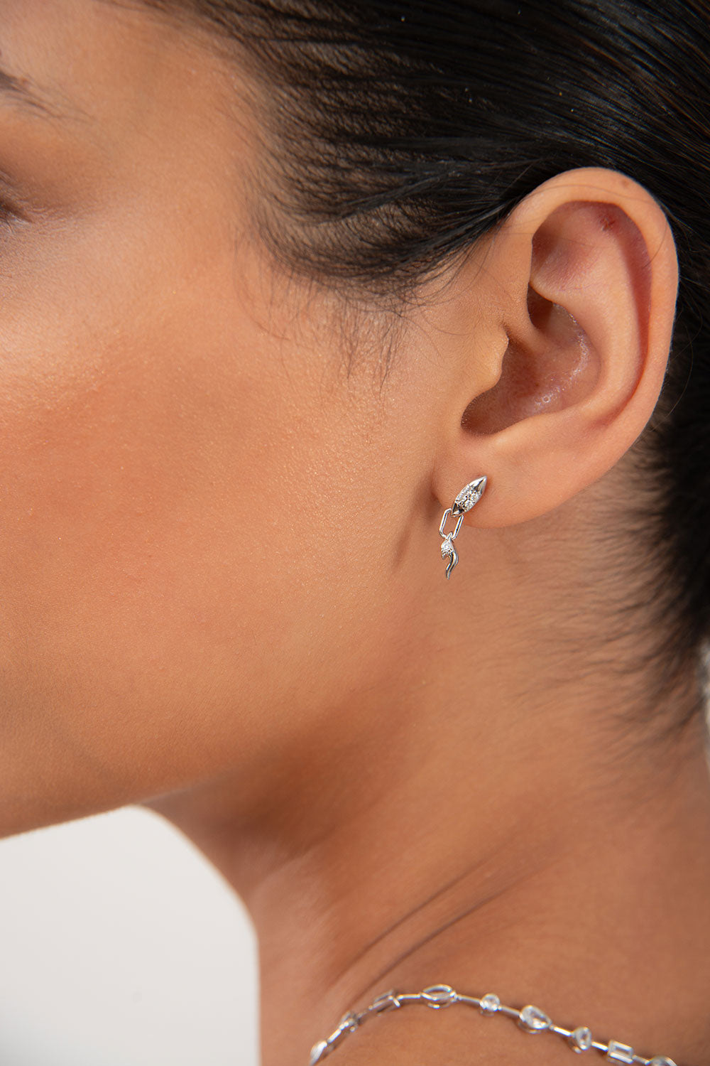 Silver 925 sterling silver earrings with moving and crystal stone details 142