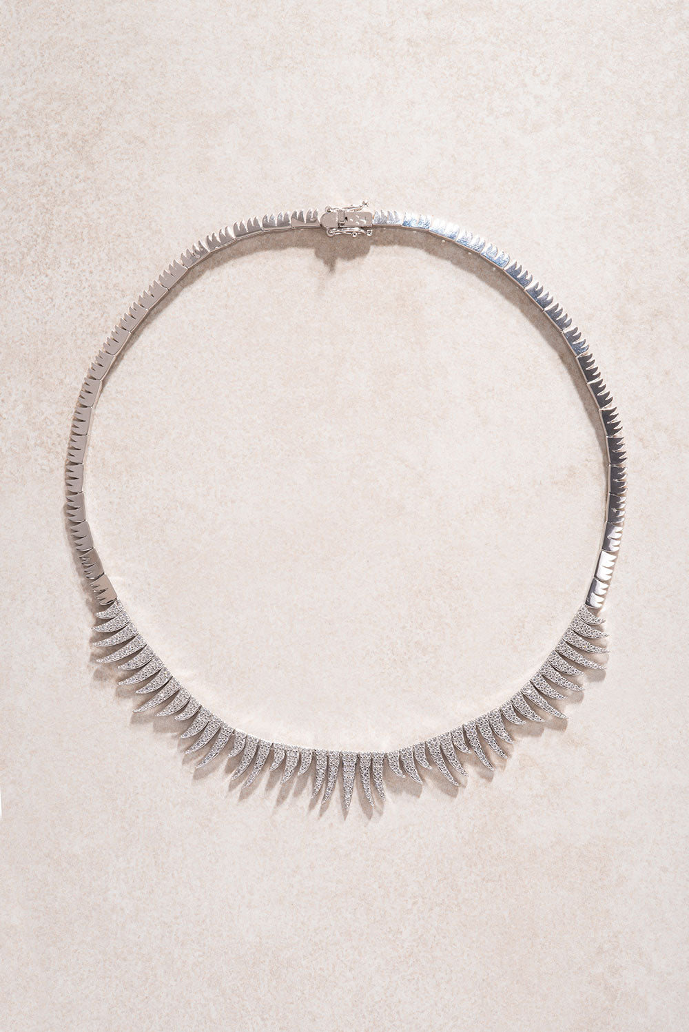Silver 925 sterling silver fine detailed crystal stone necklace 14
