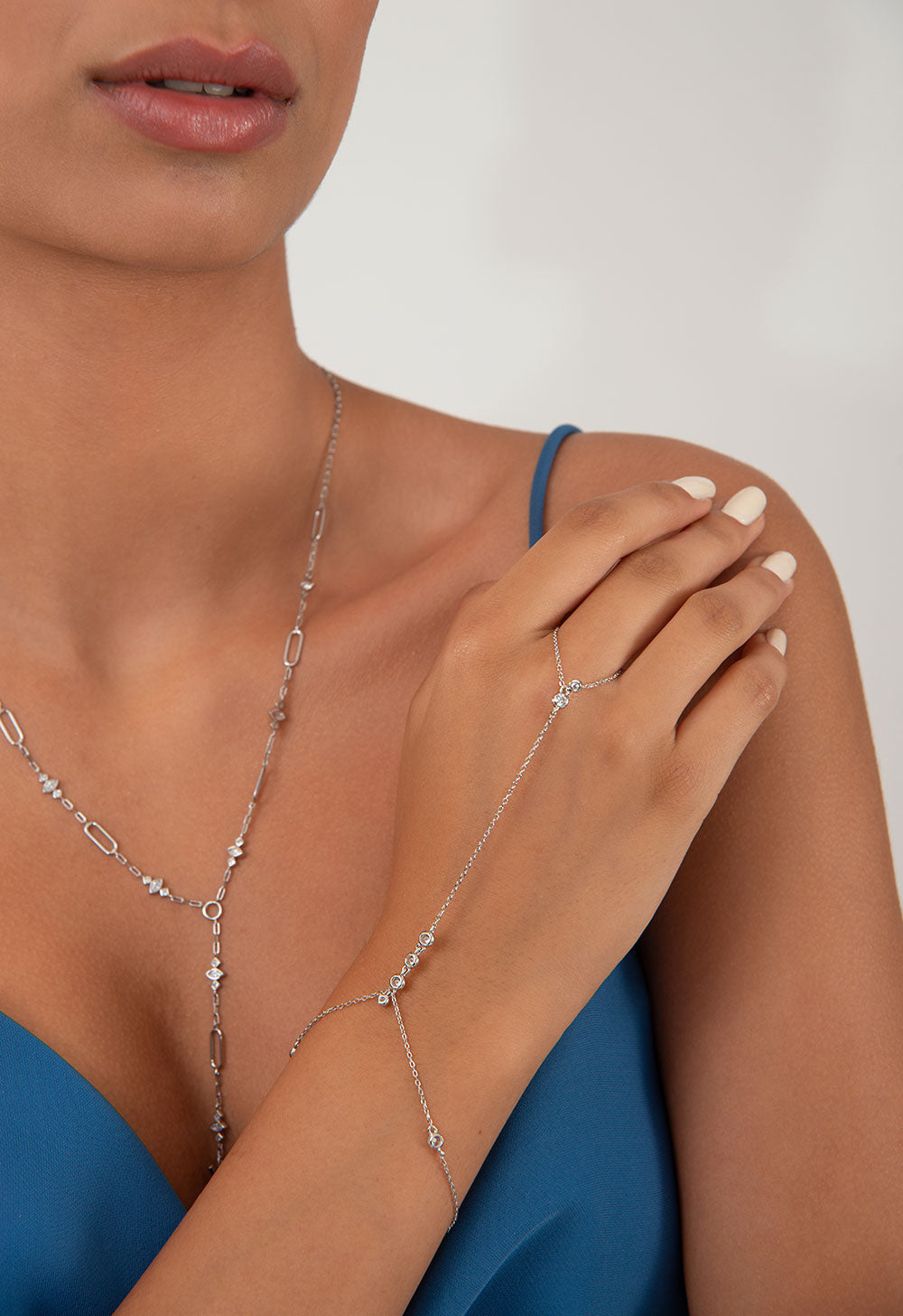 Silver 925 sterling silver hand chain with sparkling crystal accents 148