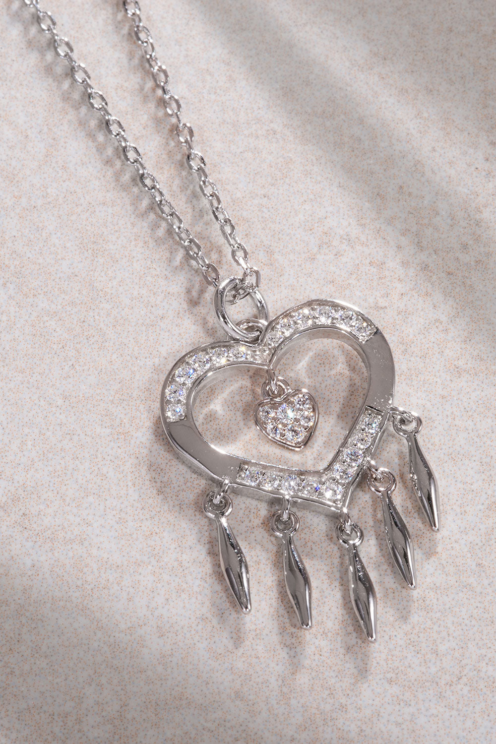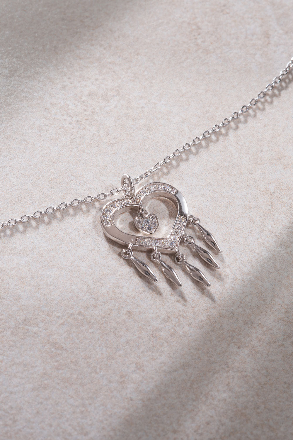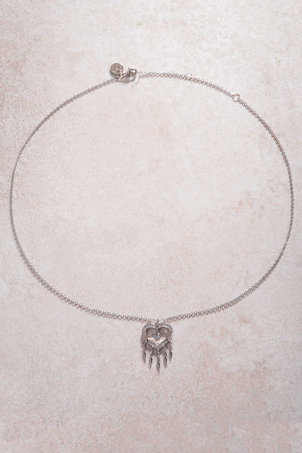 Silver 925 sterling silver heart and stone detailed necklace 18