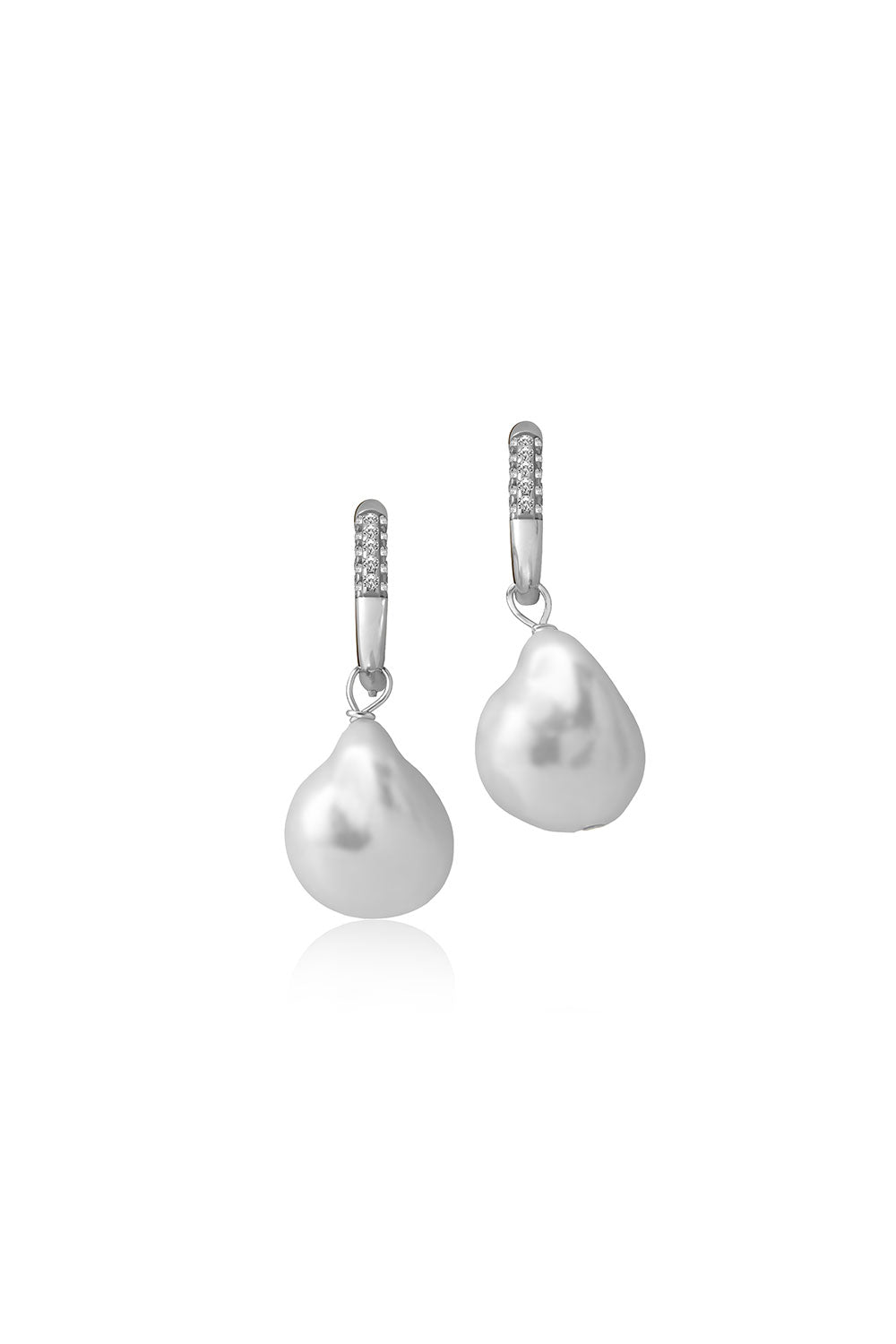 Silver 925 sterling silver hoop earring with natural pearl shape and crystal stone details 109