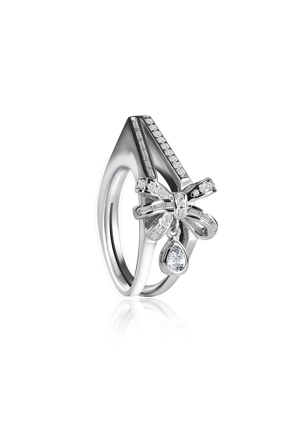 Silver 925 sterling silver ring with bow and crystal stone details 167