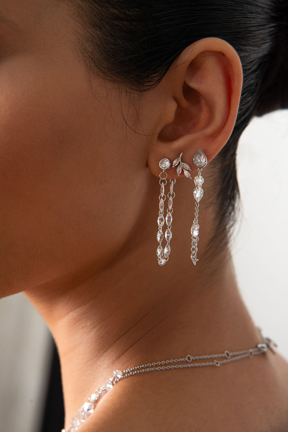 Silver 925 sterling silver sparkling stone detailed earrings 31