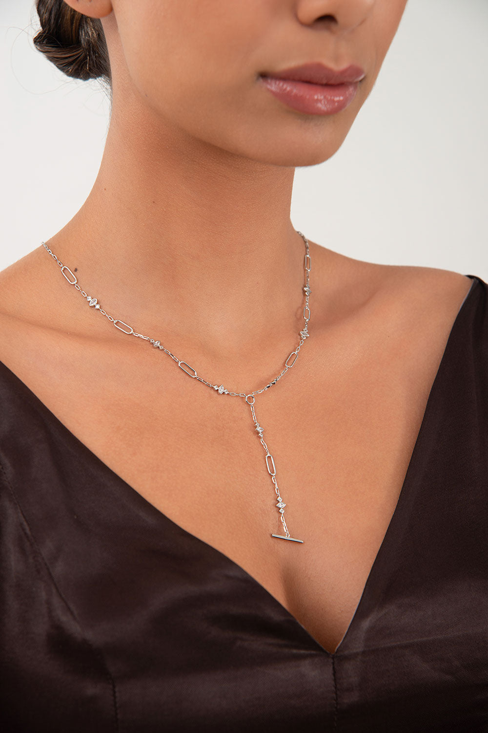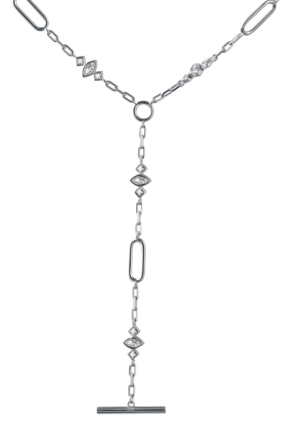 Silver 925 sterling silver Y-shaped necklace with mixed chain link design 117