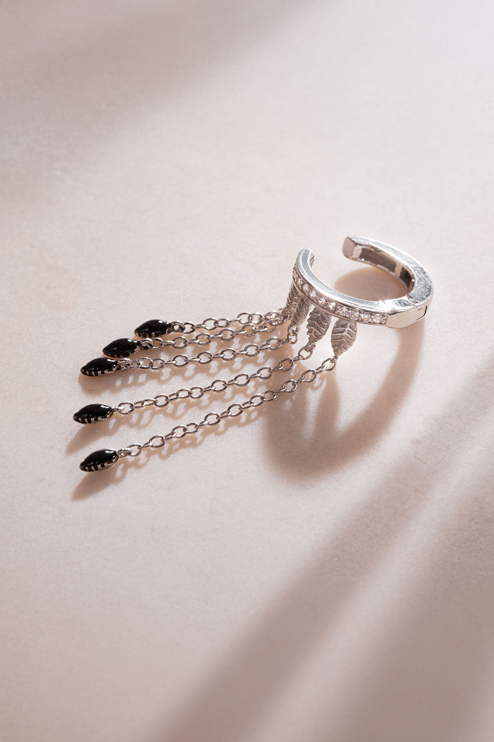 Silver Black stone chain and crystal stone detailed 925 sterling silver cartilage earrings 63