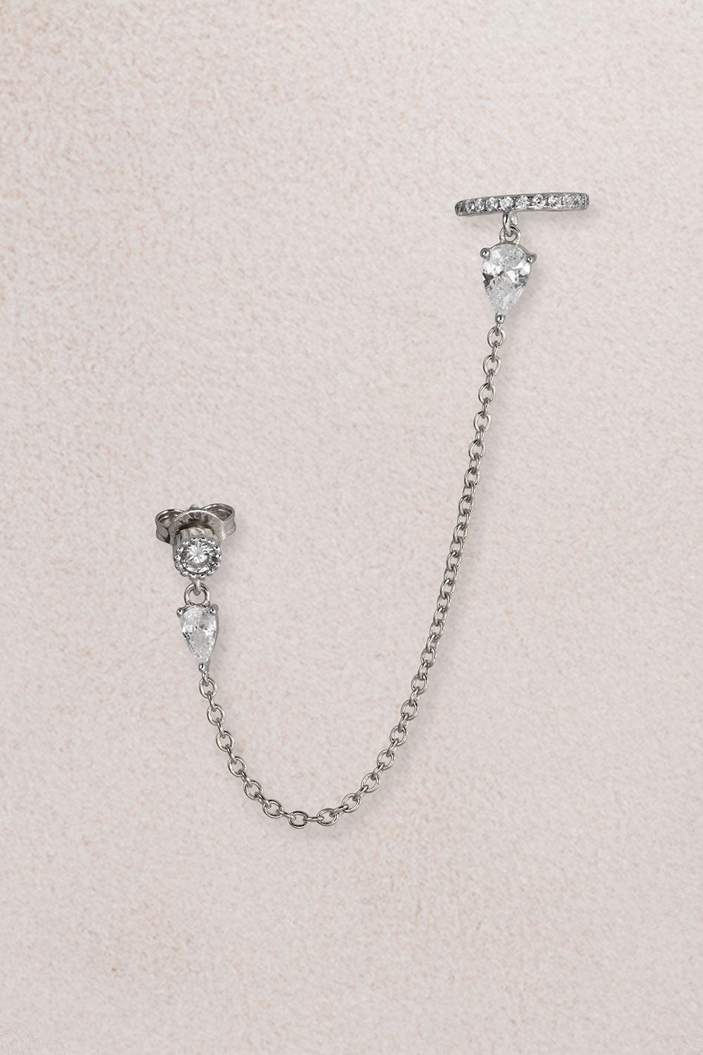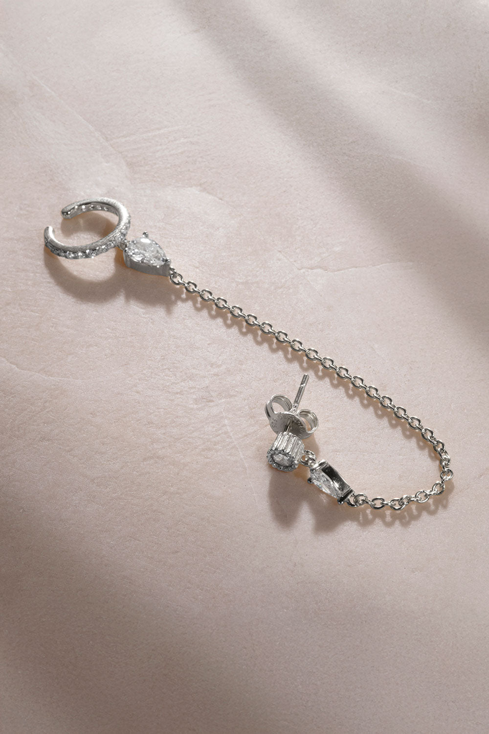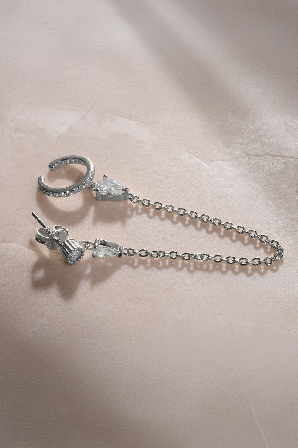 Silver Crystal stone detailed single chain 925 sterling silver earrings 44
