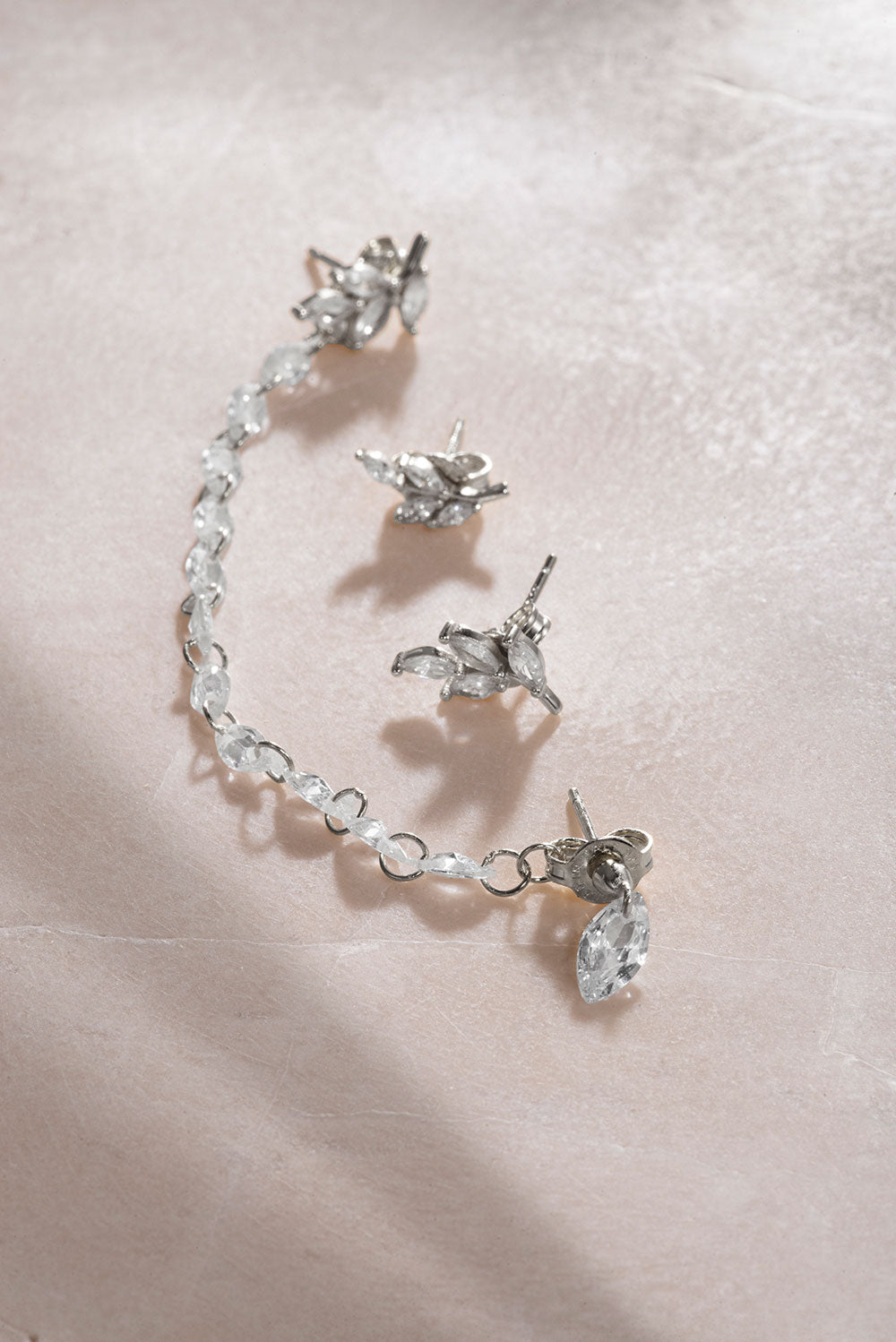 Silver Leaf and crystal stone detailed 925 sterling silver earrings 33