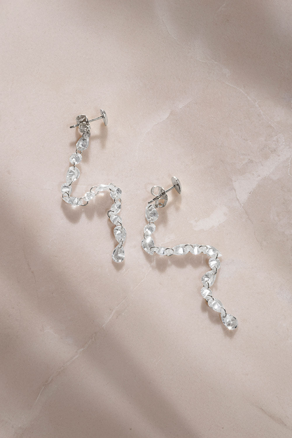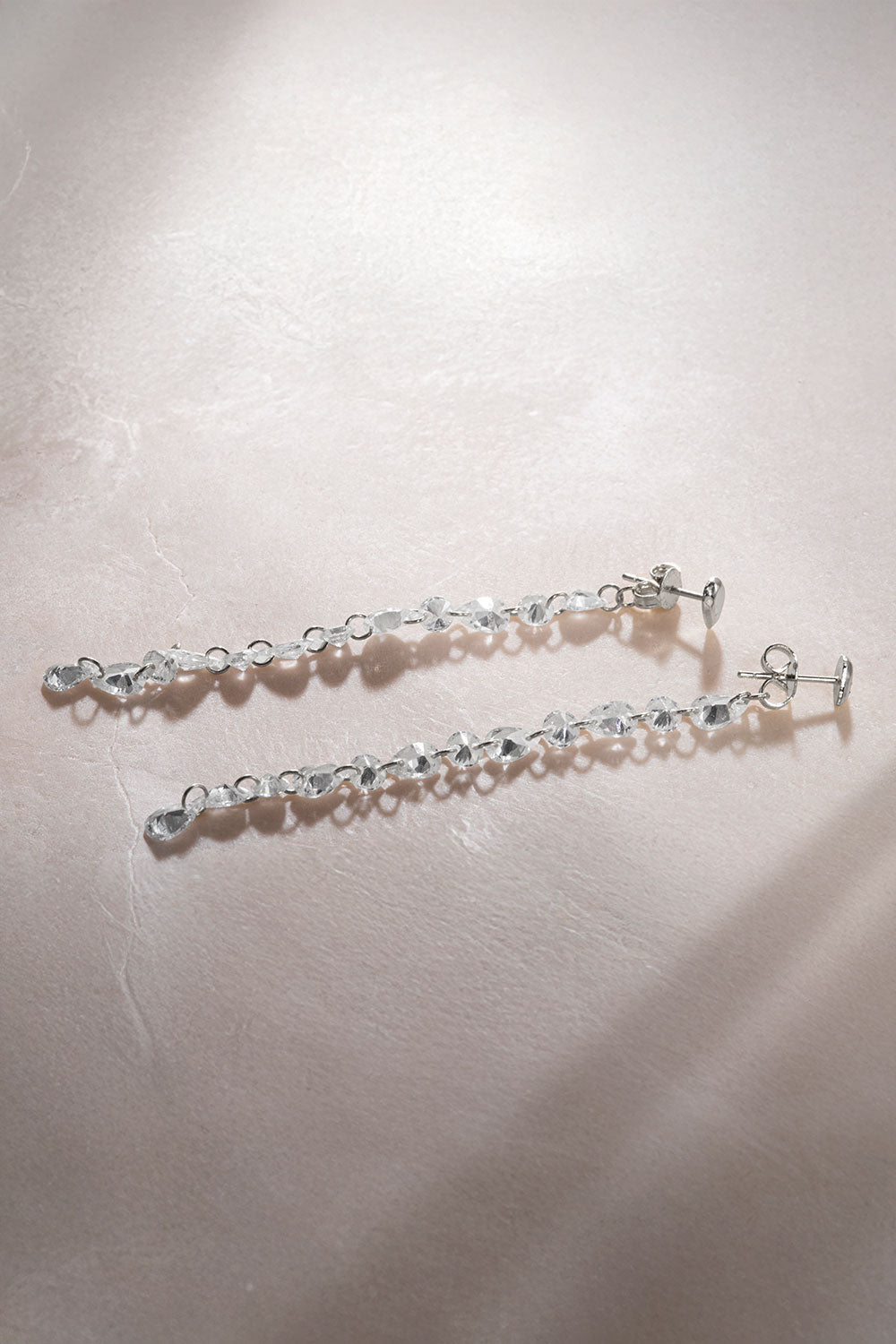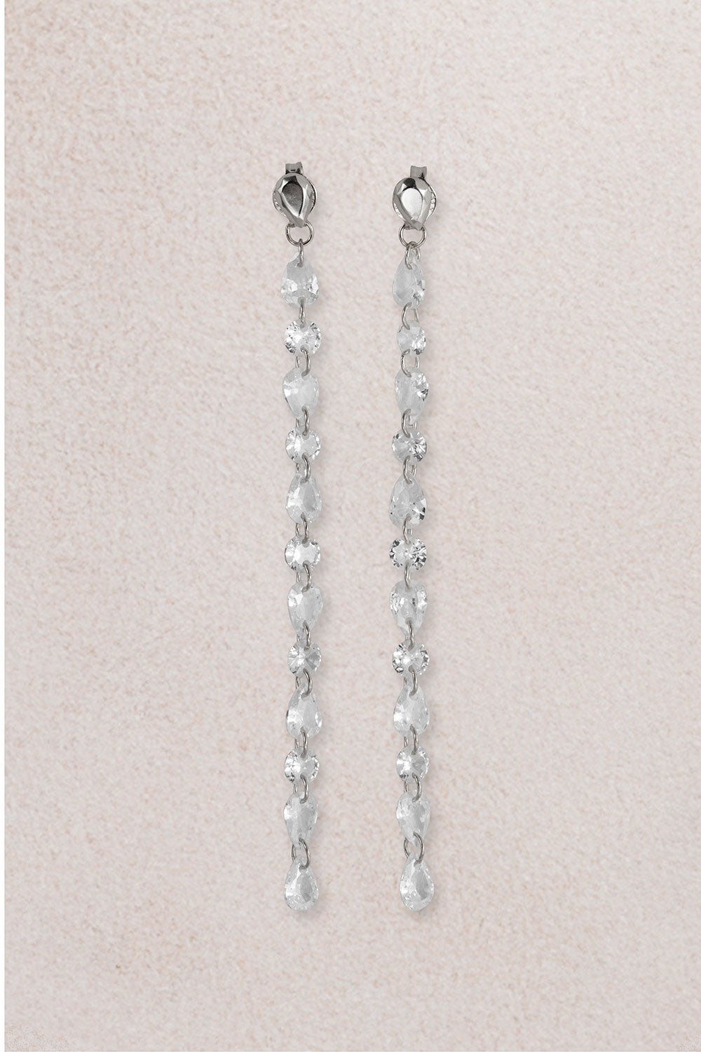 Silver Long sparkling and crystal stone detailed 925 sterling silver earrings 60