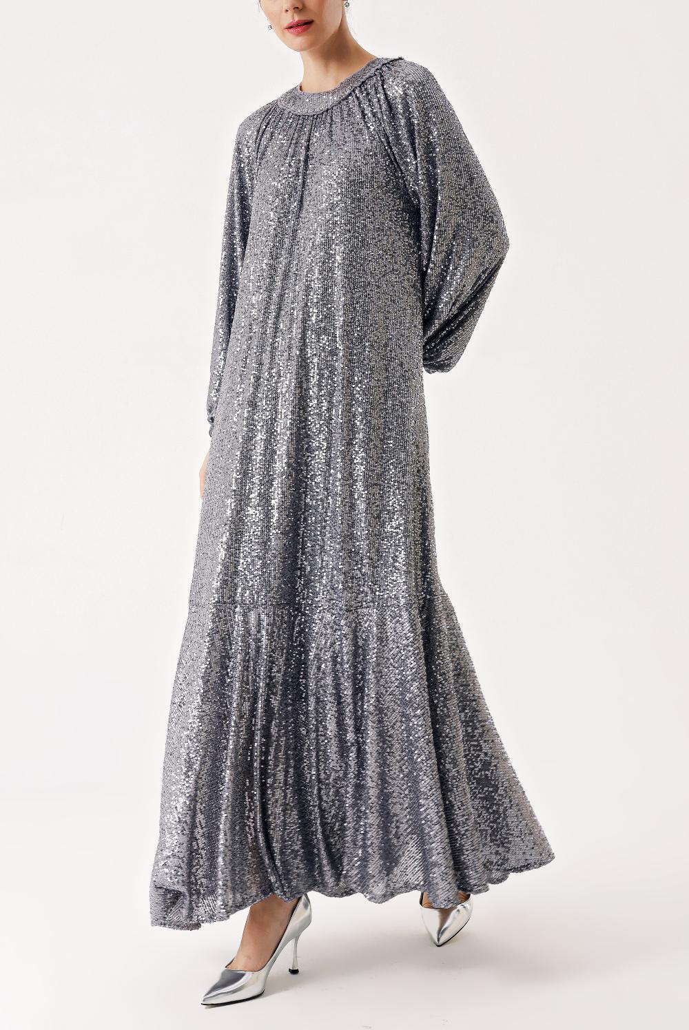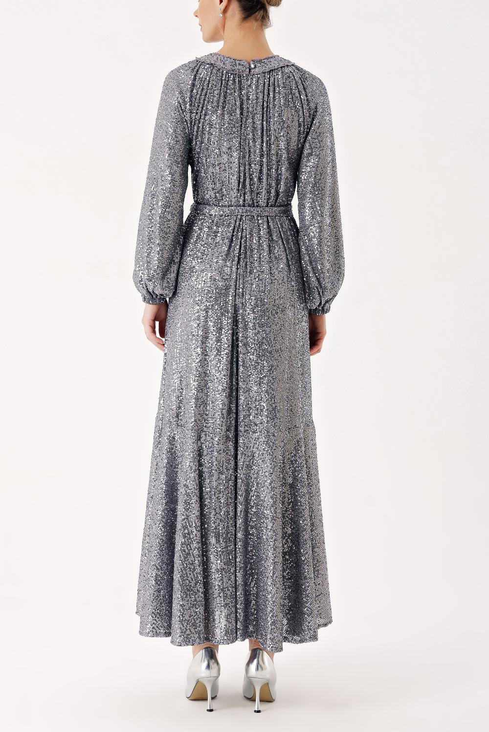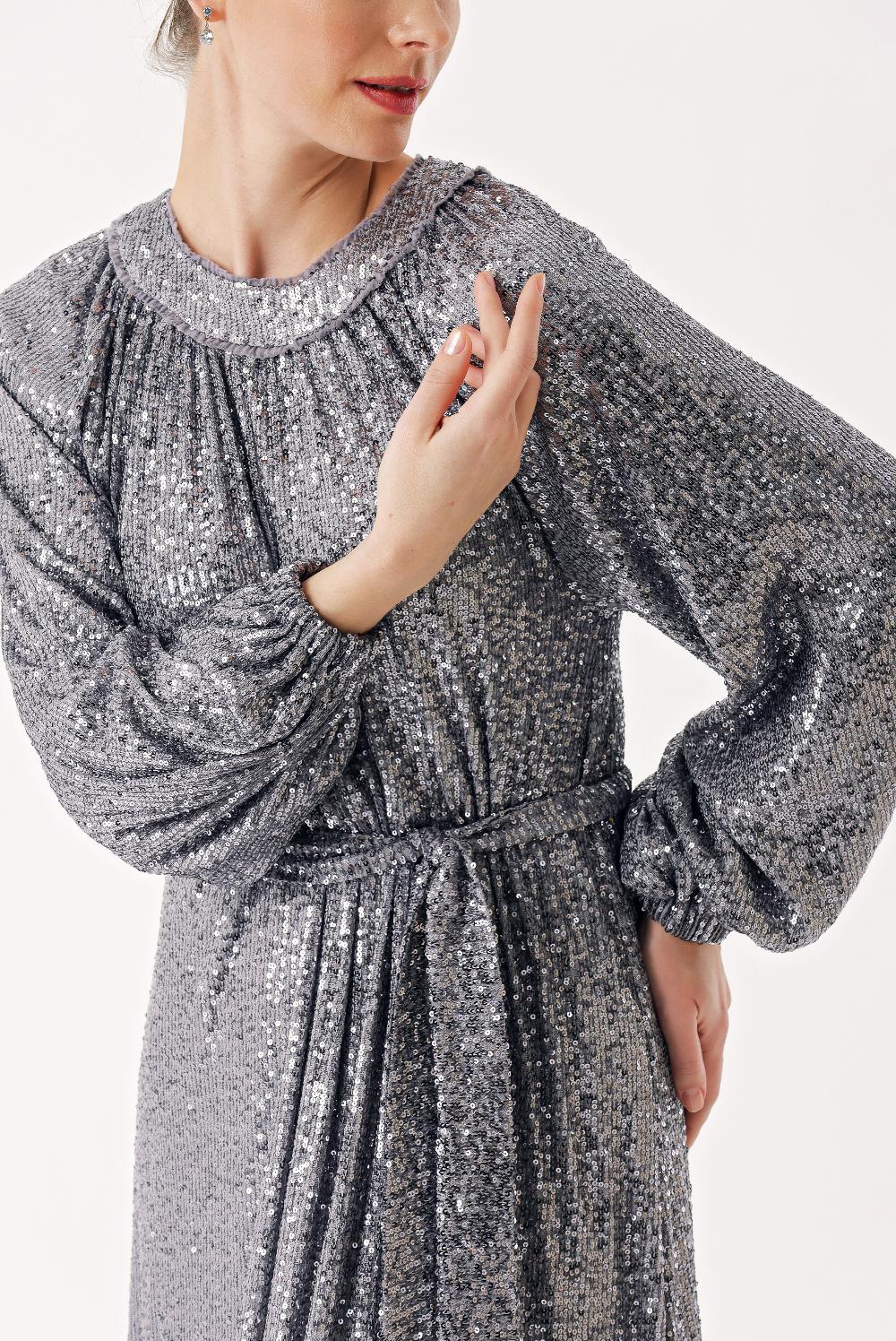 Silver Ruched detail sequined balloon sleeve dress 94468