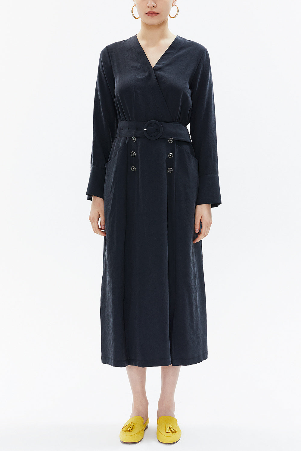 Smoked Wrap-over belted midi dress 93322