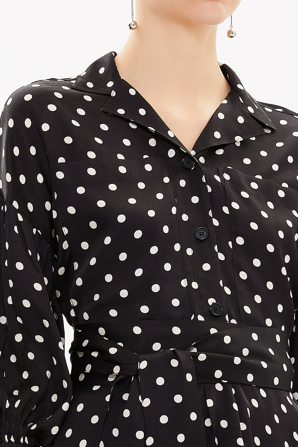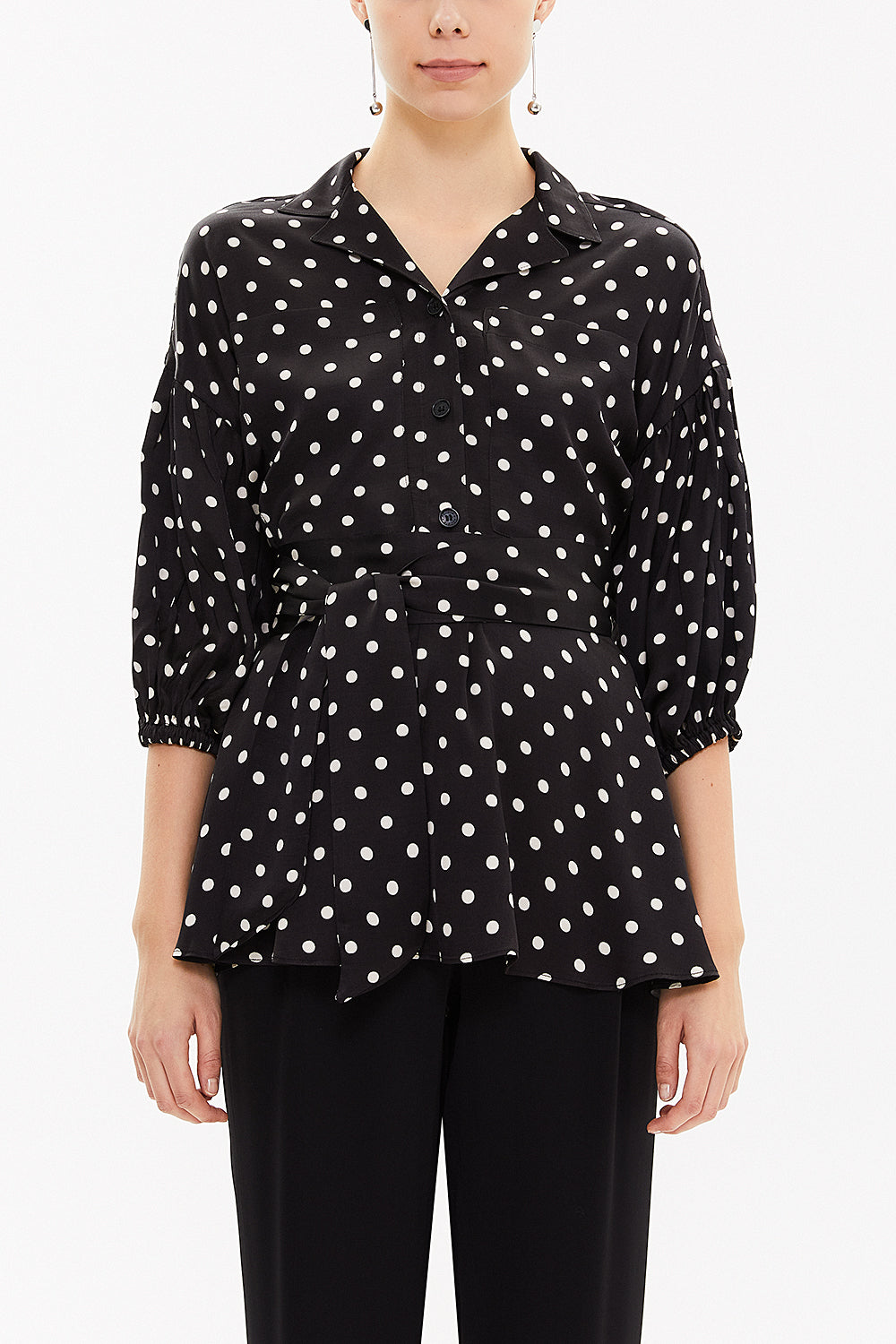Spotted Balloon sleeve wide cut blouse 19761
