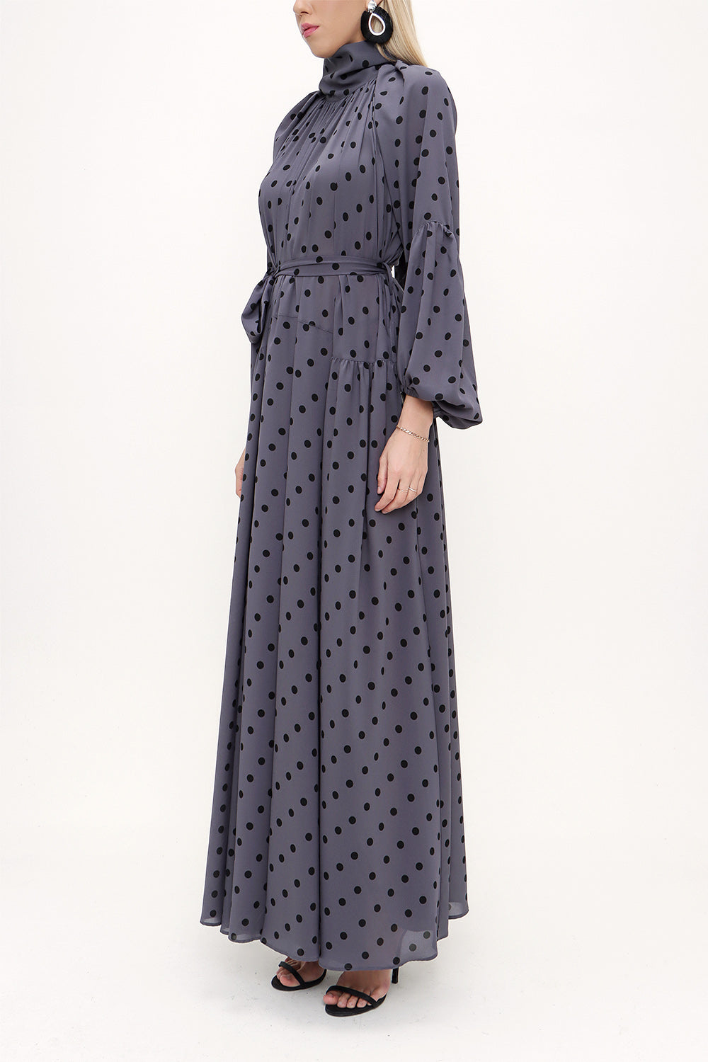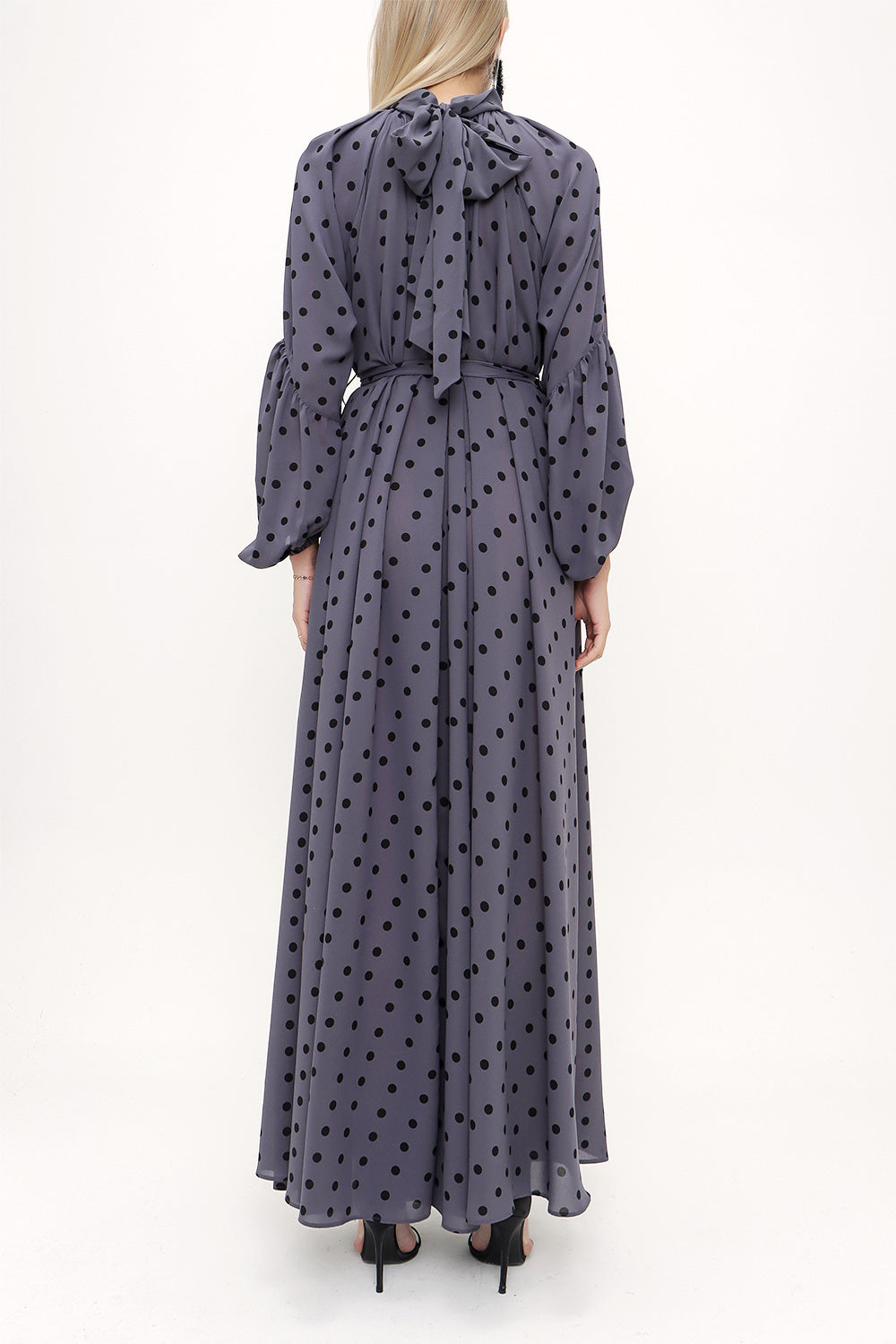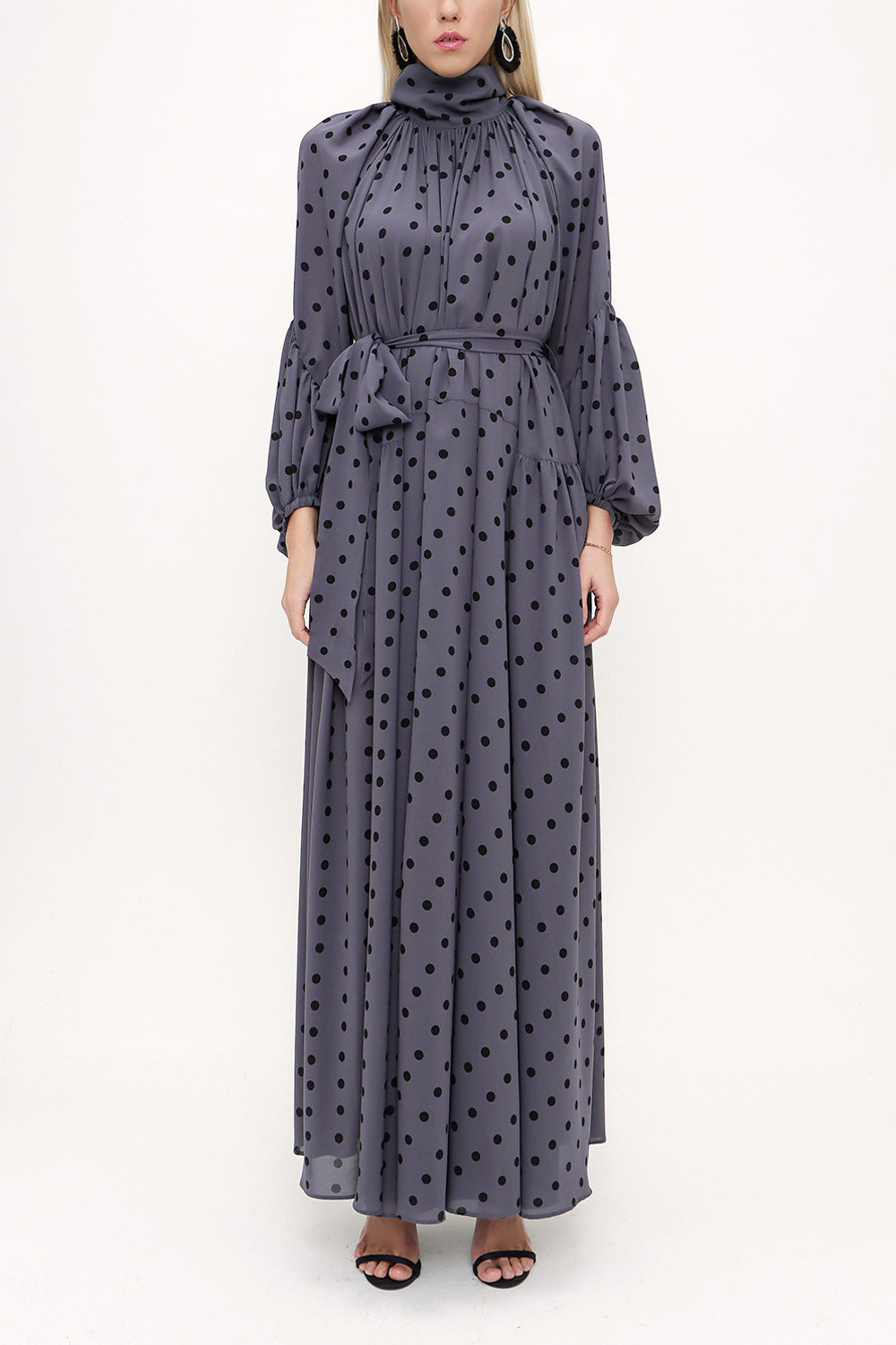 Spotted Tie collar maxi dress 93830