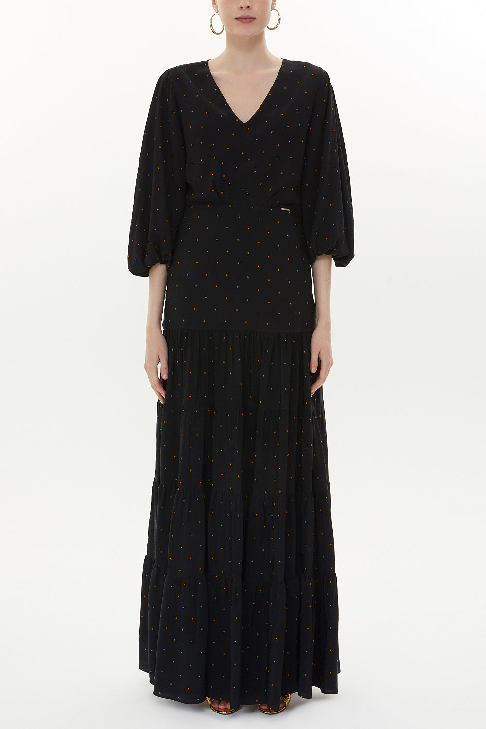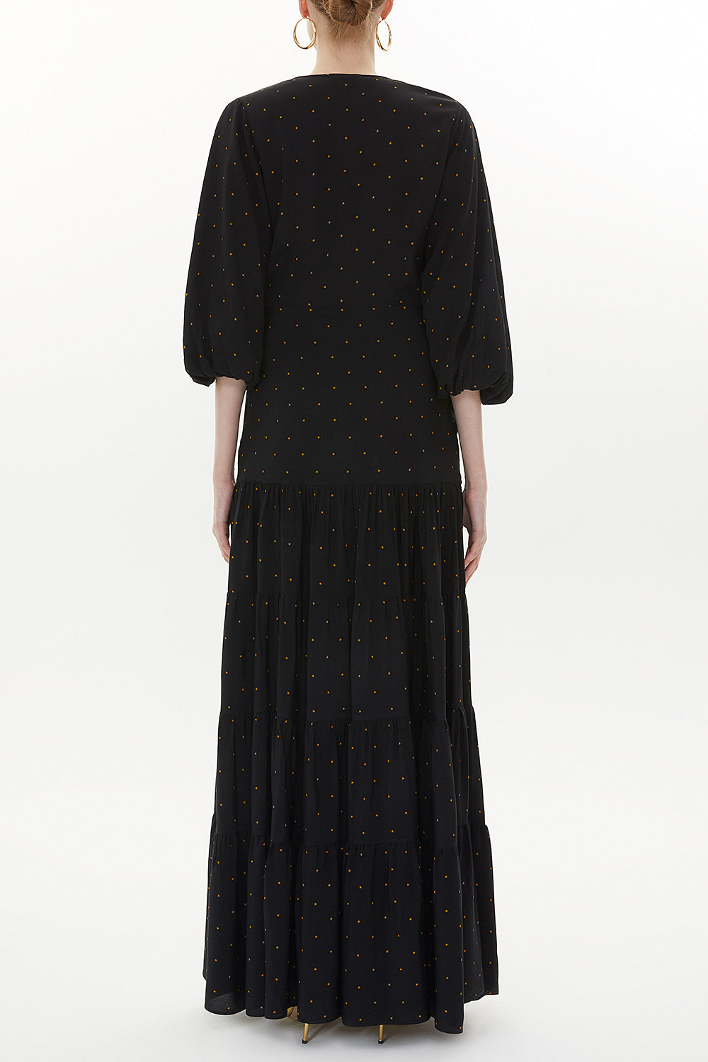 Star Pattern V-neck balloon sleeve maxi dress 93344