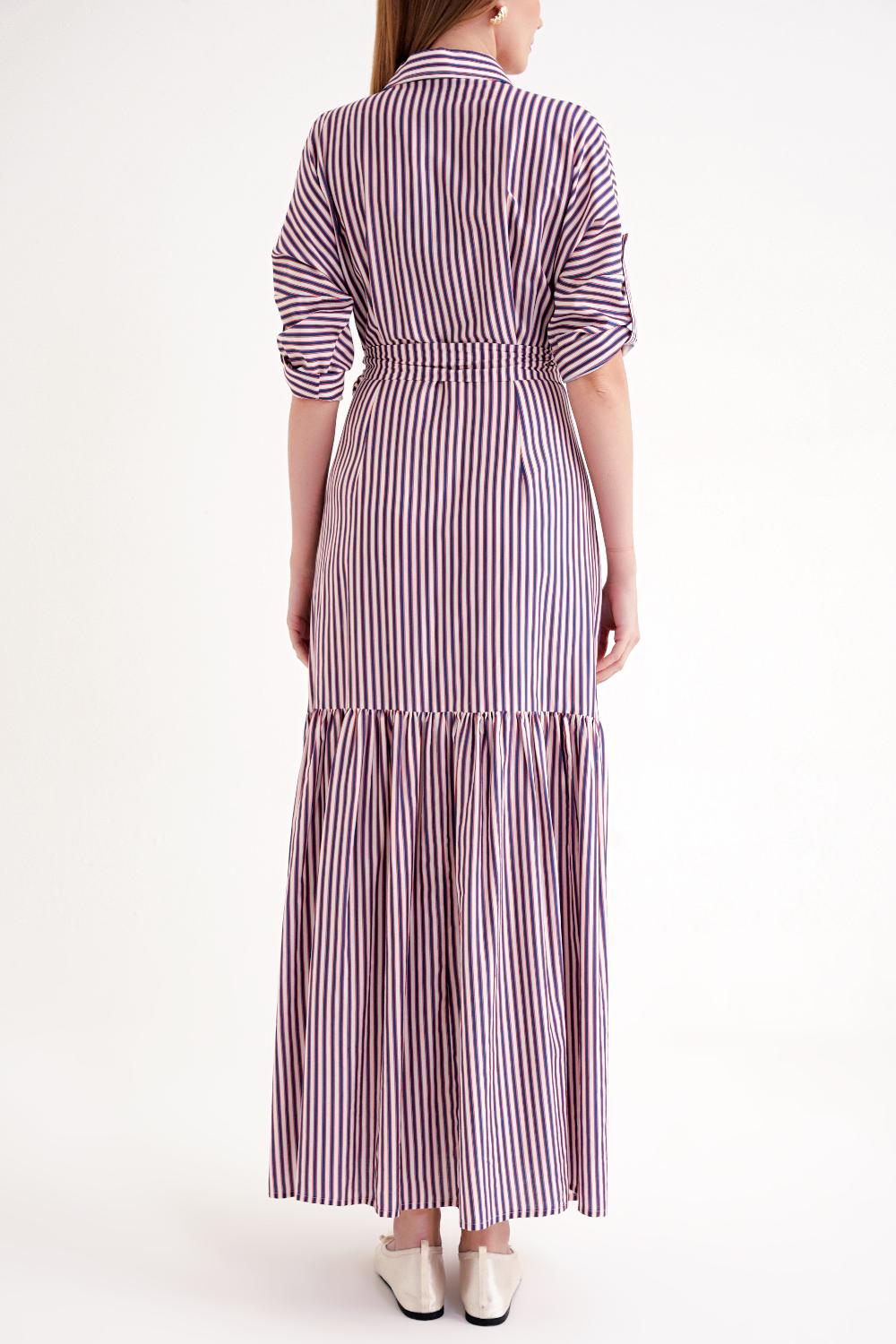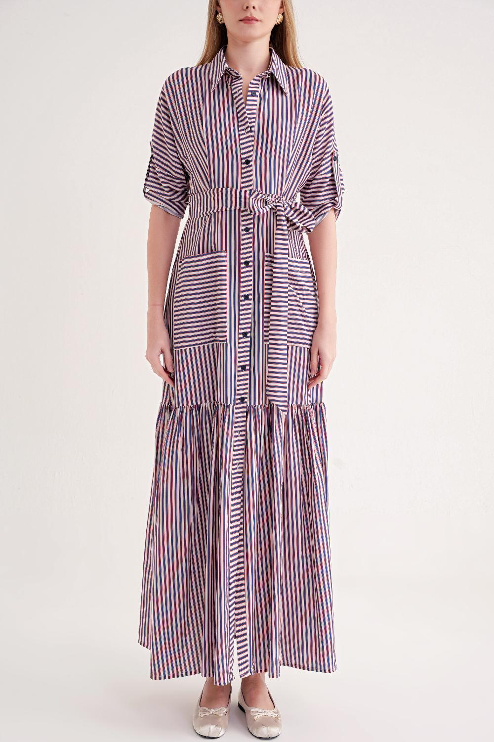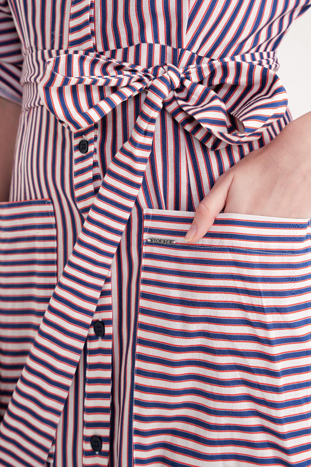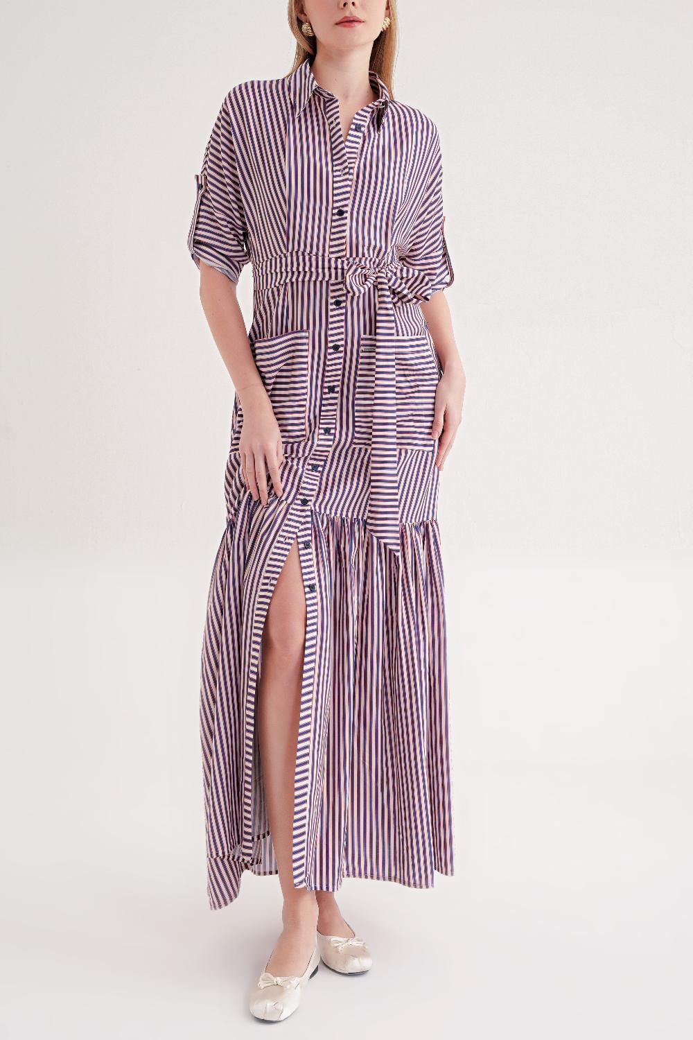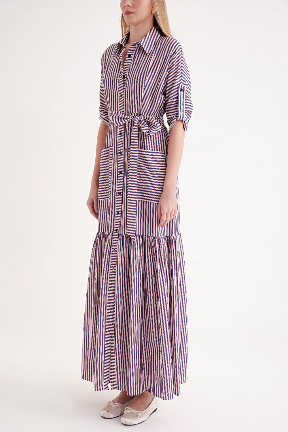 Striped Gathered long shirt dress 94523