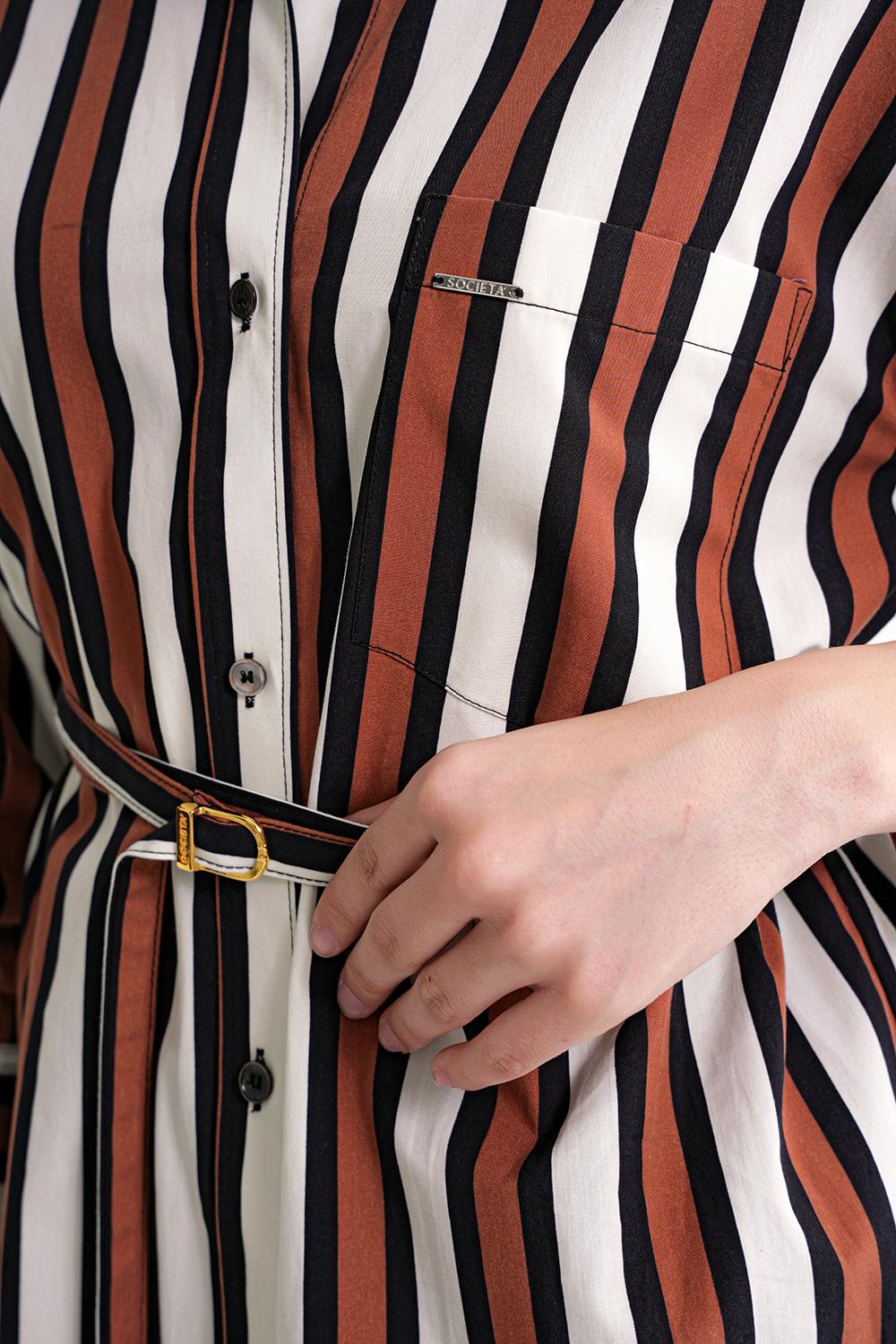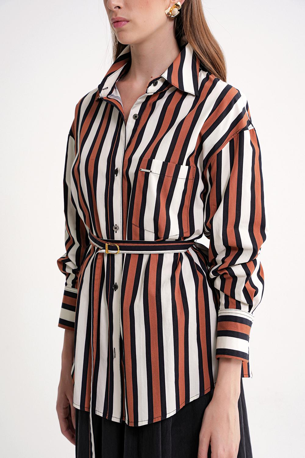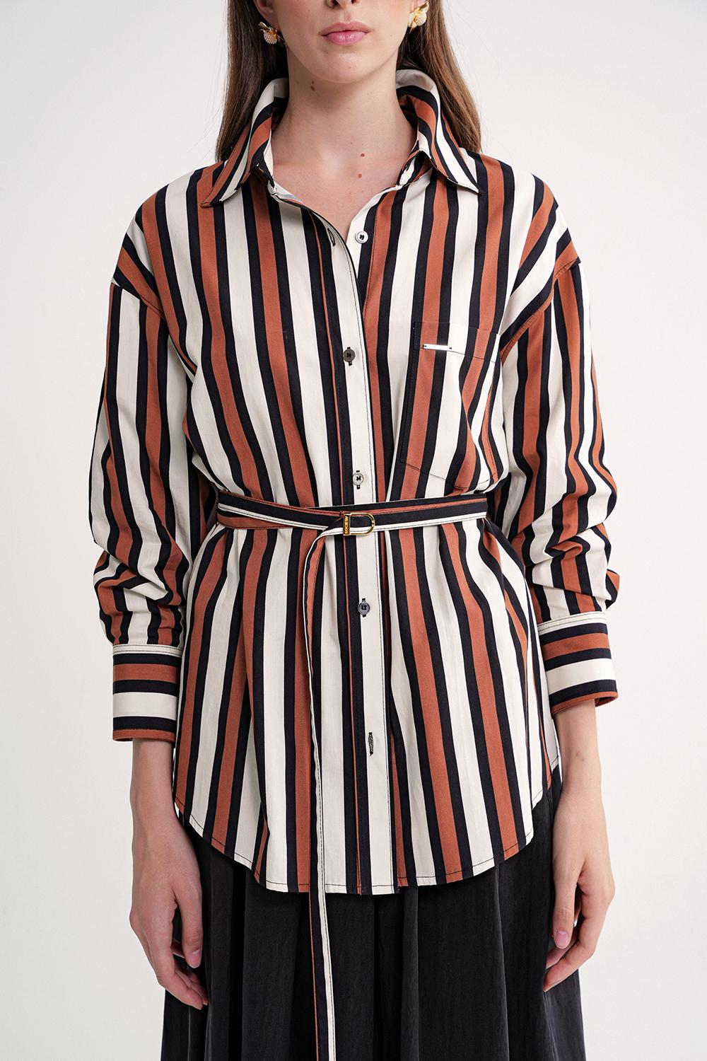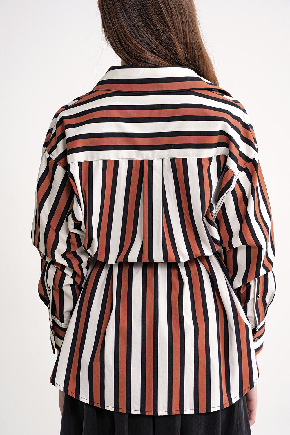 Striped Gathered sleeves, a belted waist, and low shoulders shirt 10839