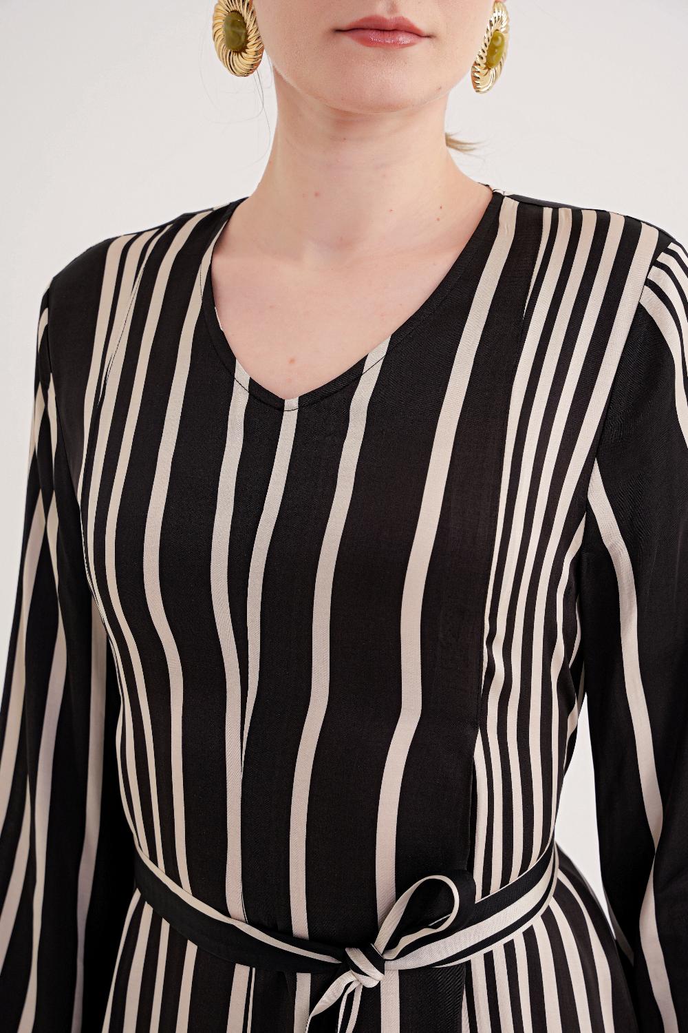 Striped Loose-fitting belted dress 94697
