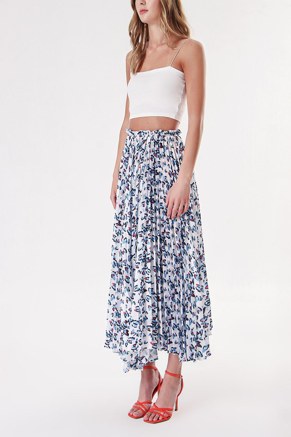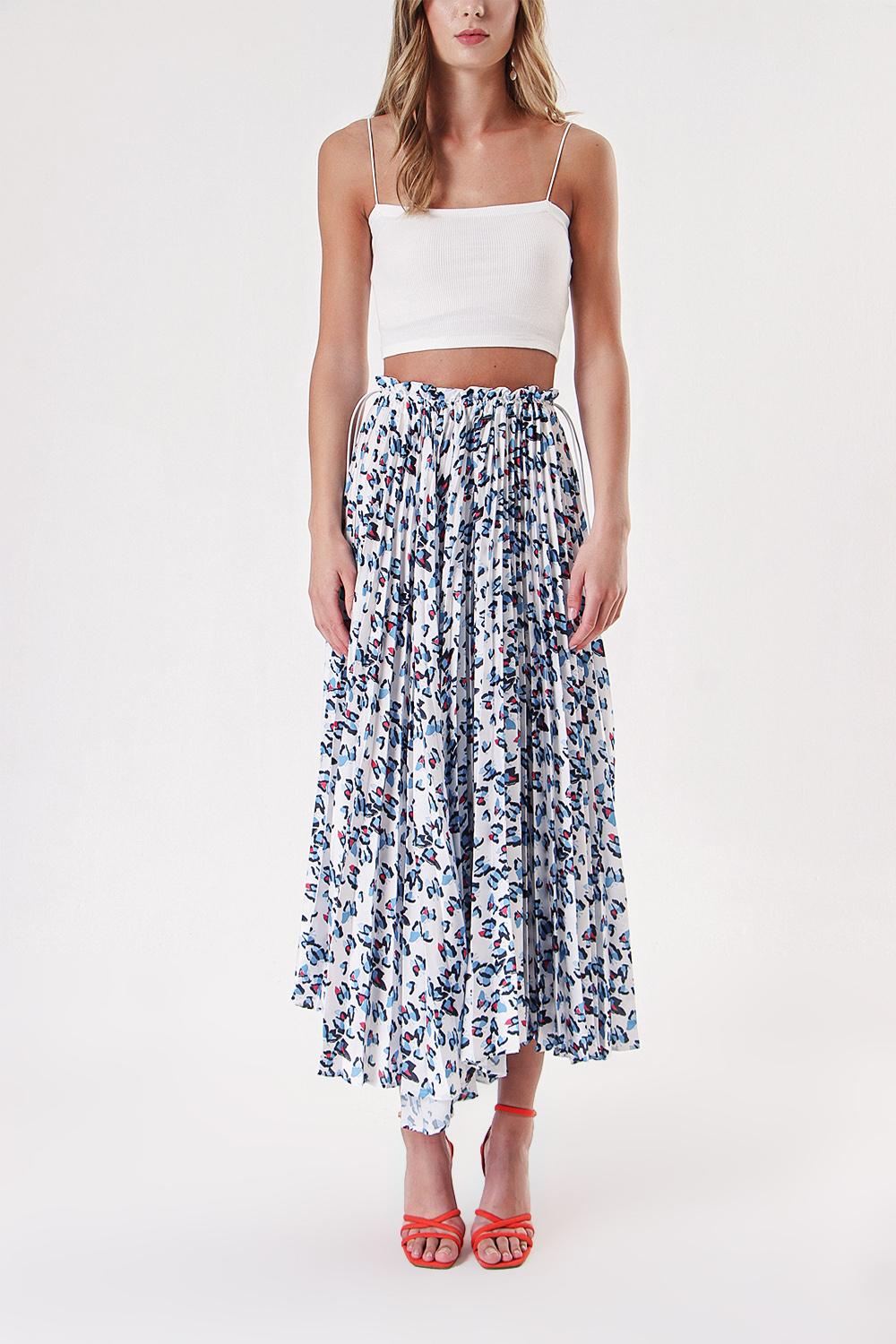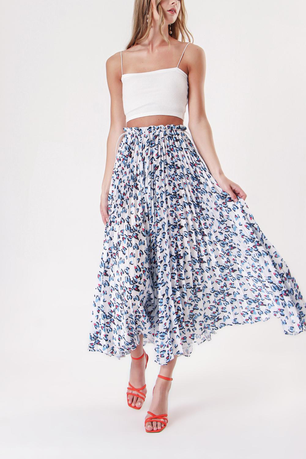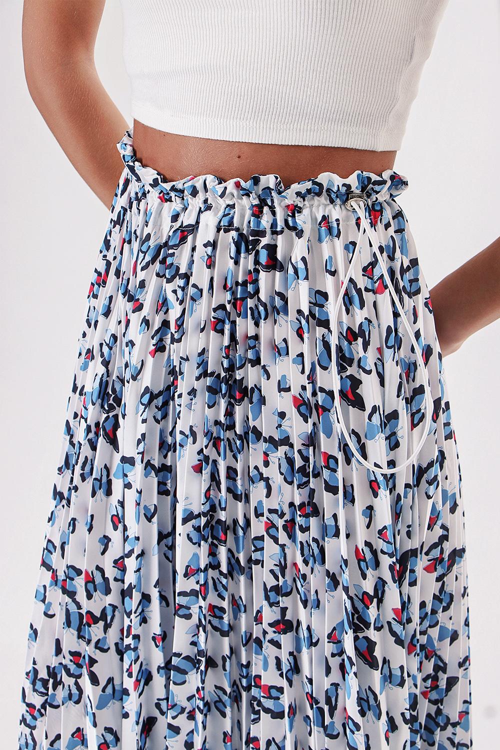 White Blue Pleated skirt with elastic waist 81218