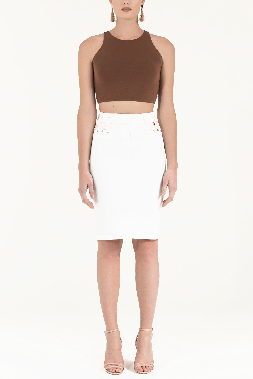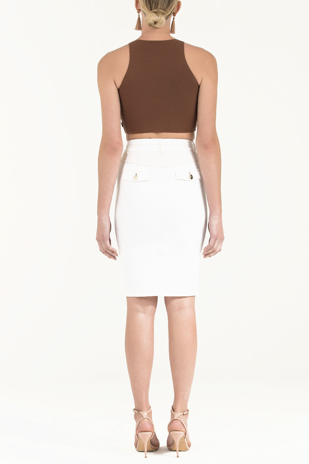 White Contrast-stitch cotton skirt 80407