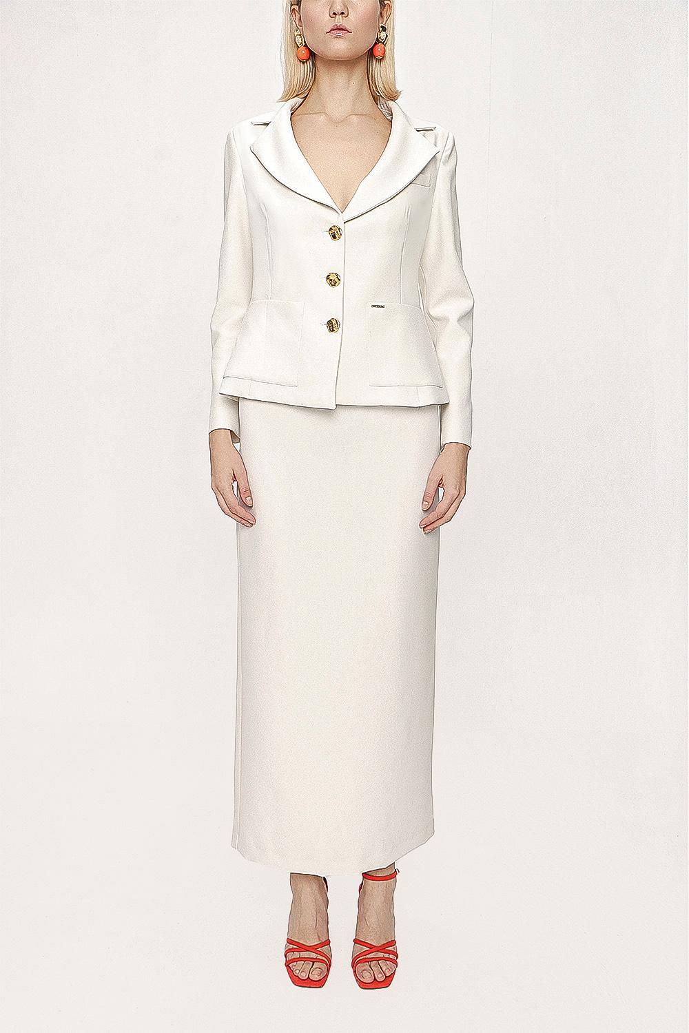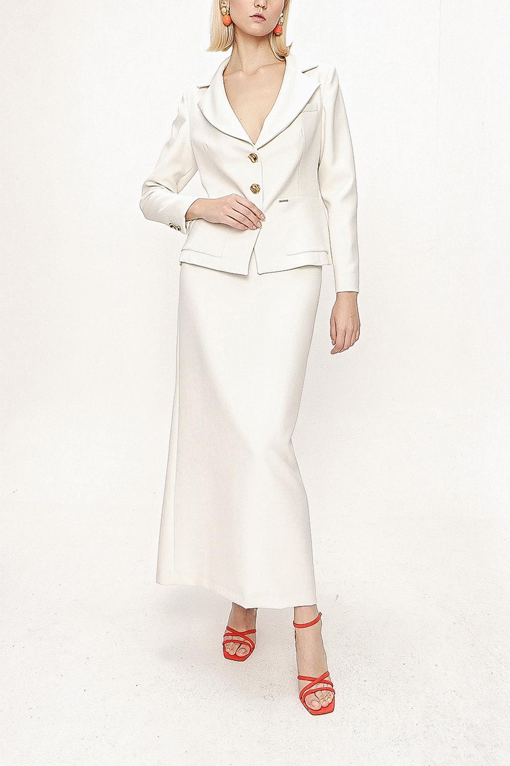White Double suit with long skirt and blazer jacket 12281
