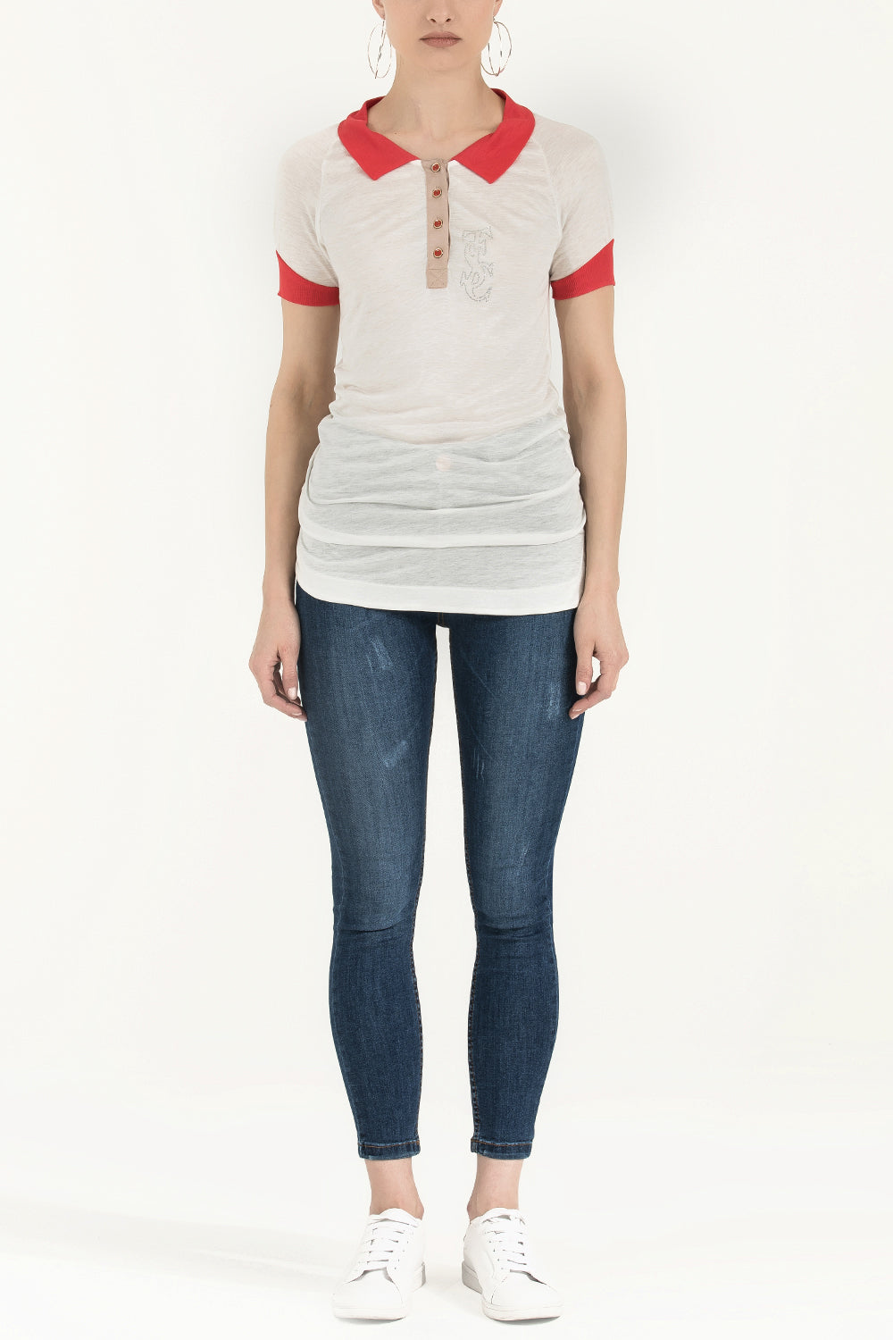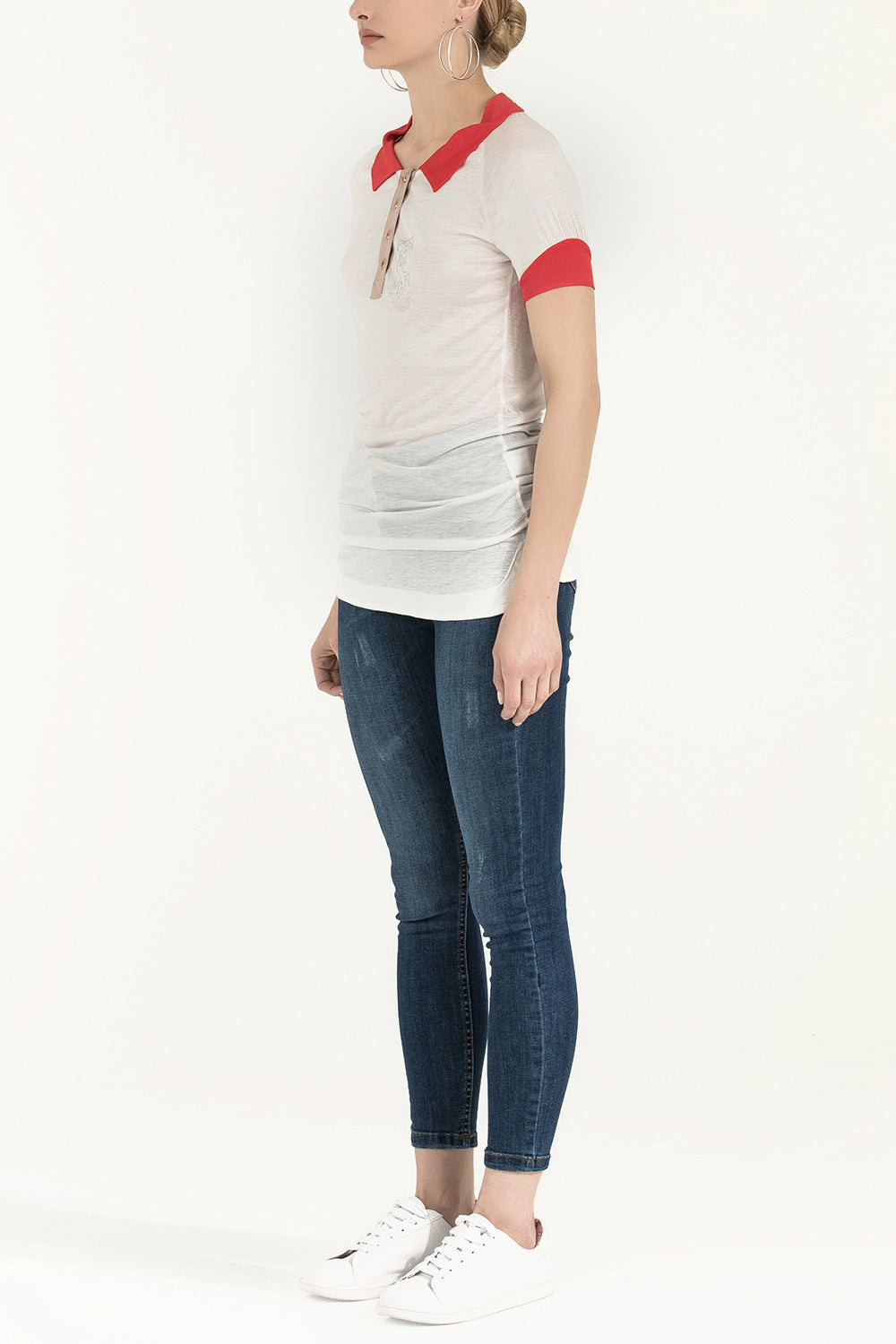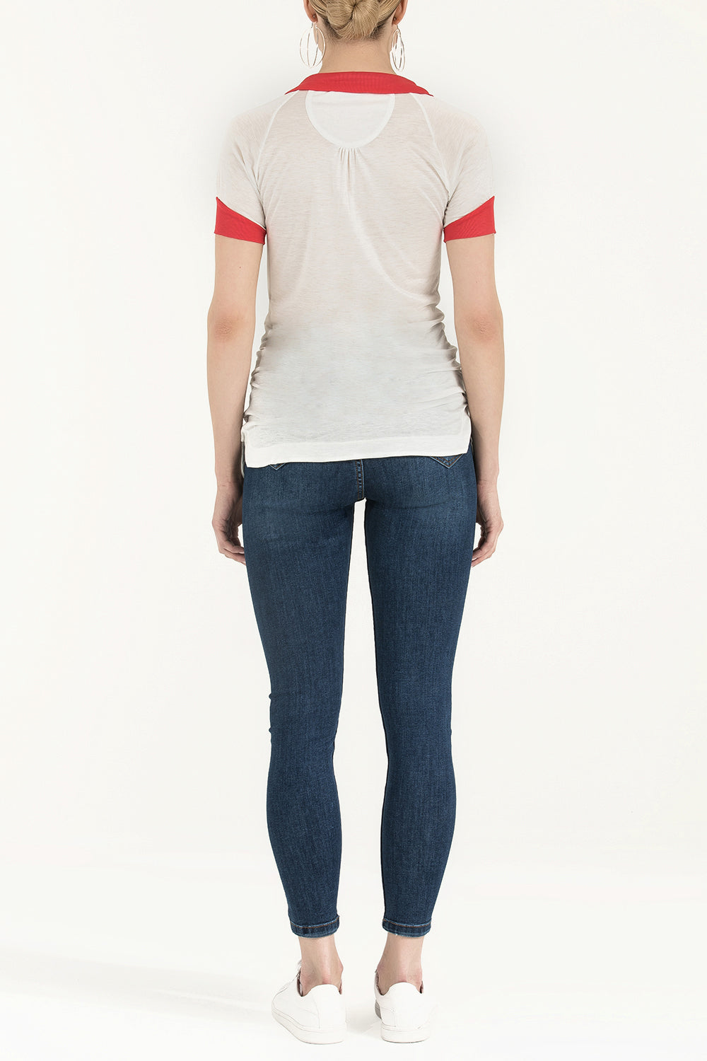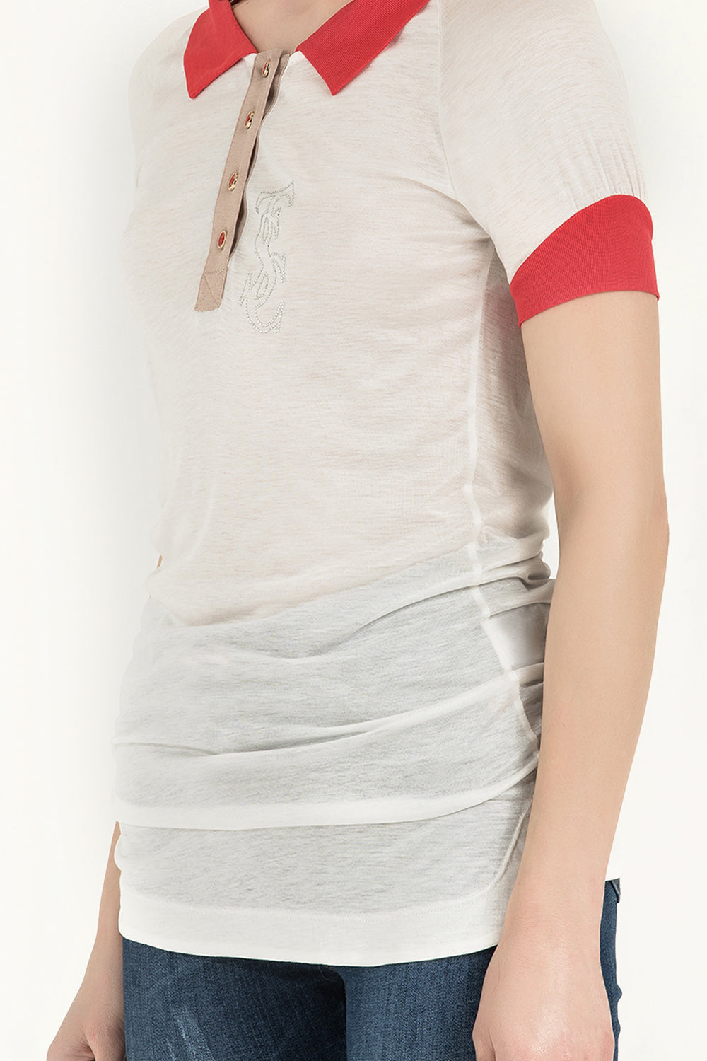 White Knit neck woven  blouse  18755
