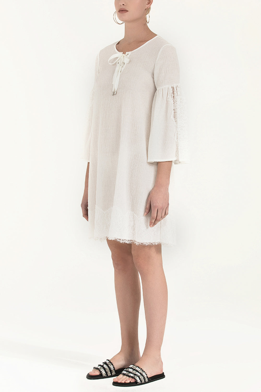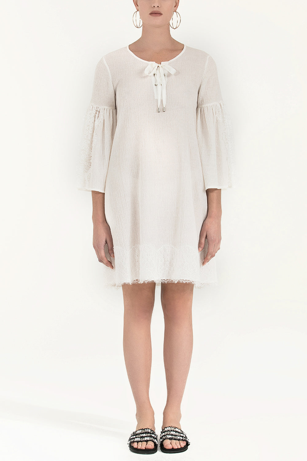White Lace and lace-up mini dress 92332