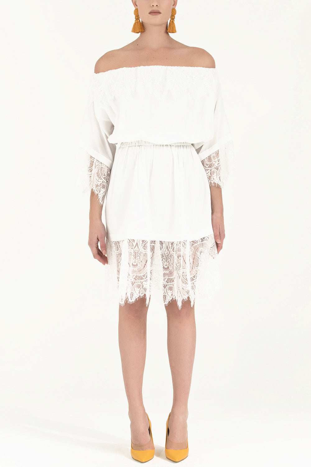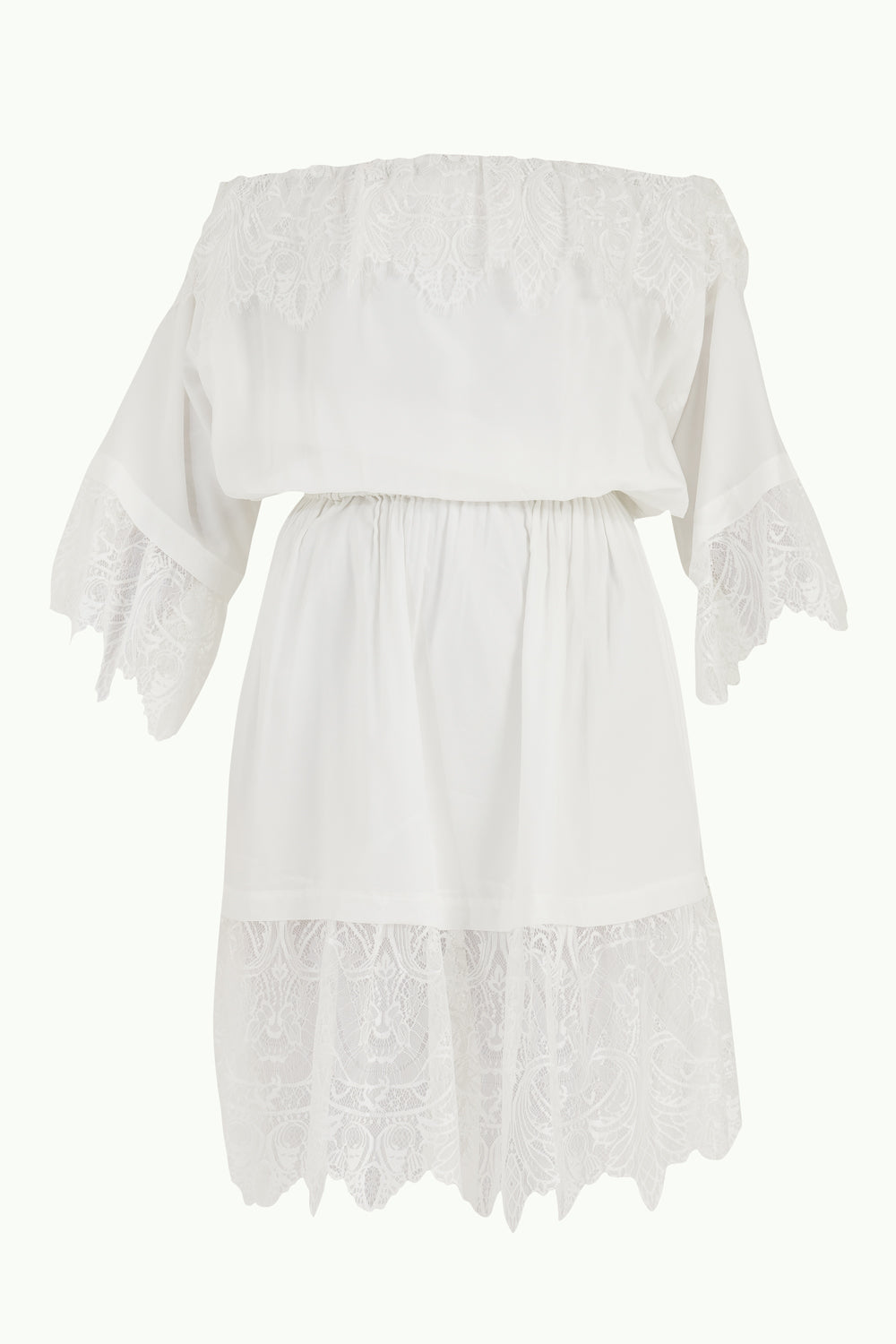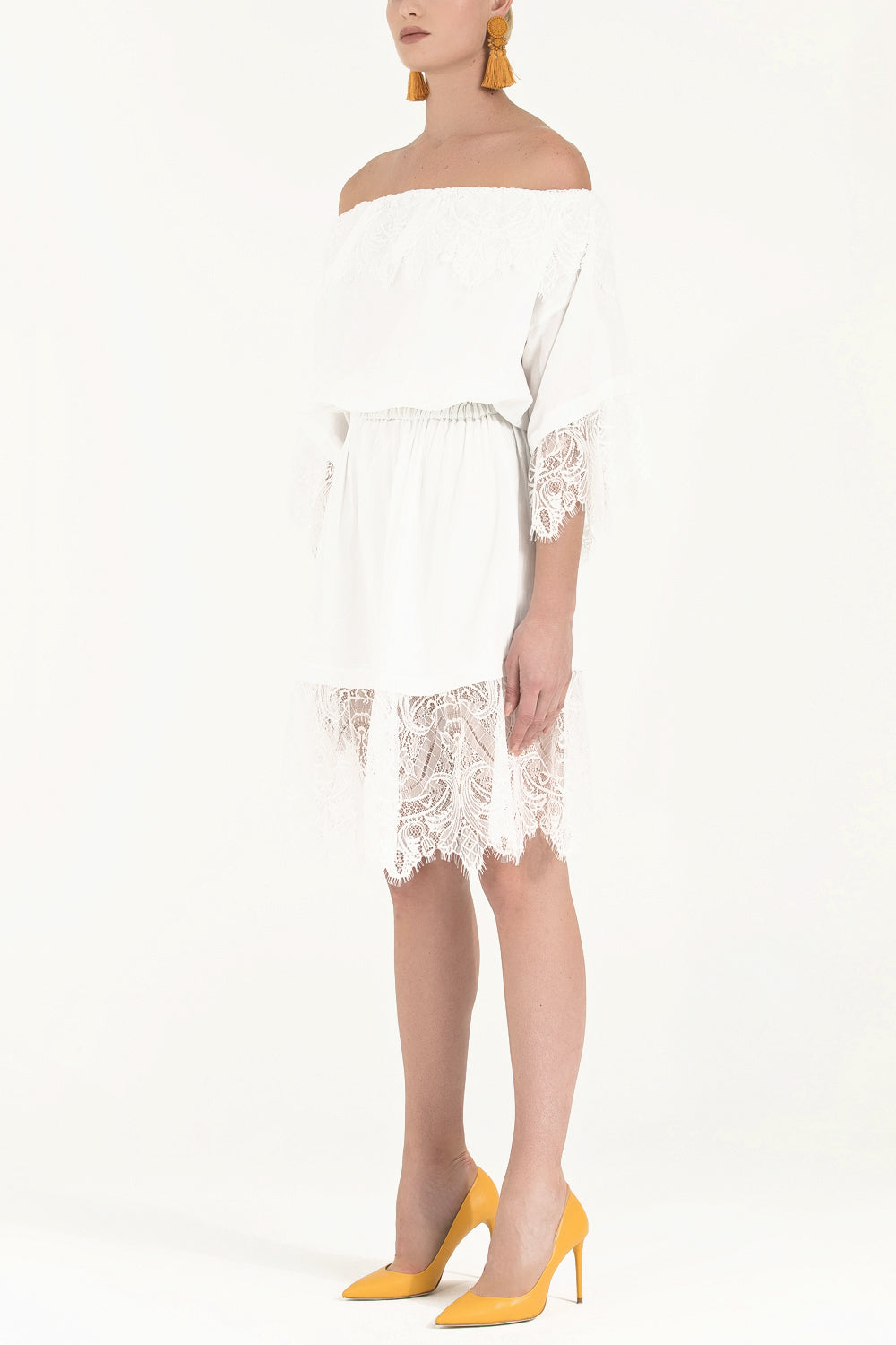 White Laced and elastic midi dress 92313