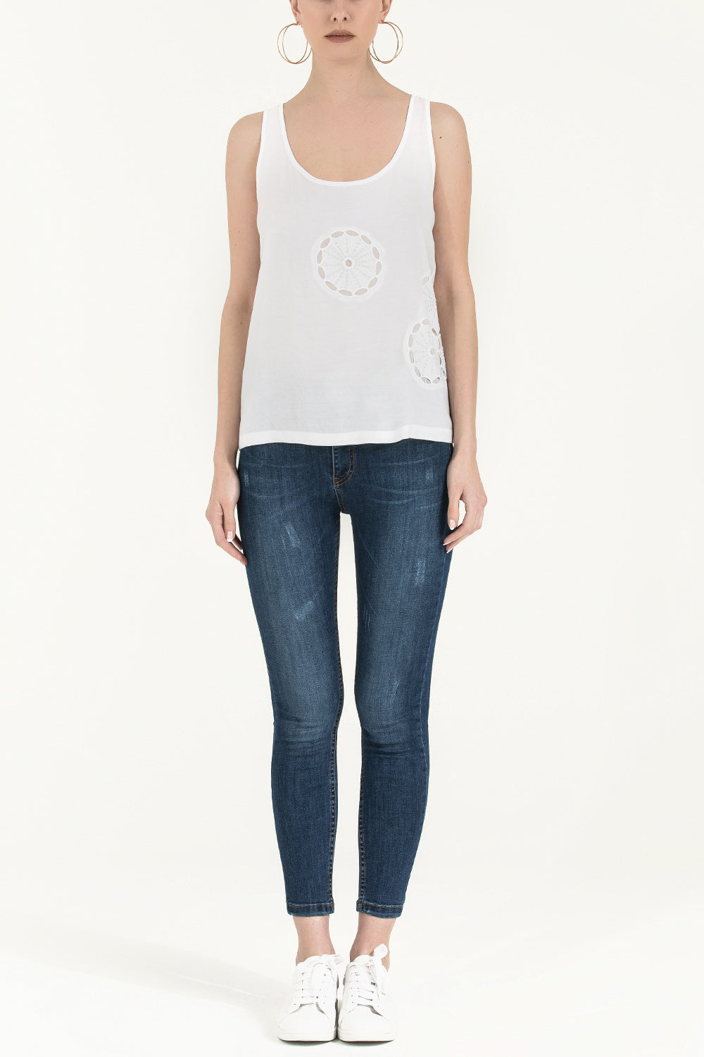 White Laser cut wide cut blouse 19562