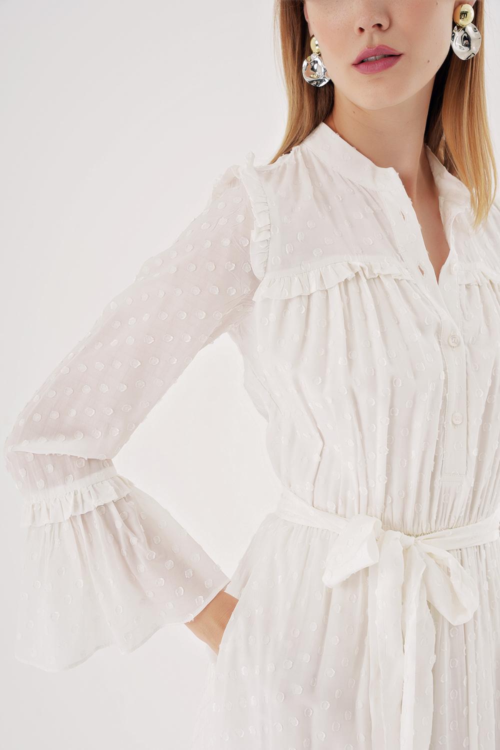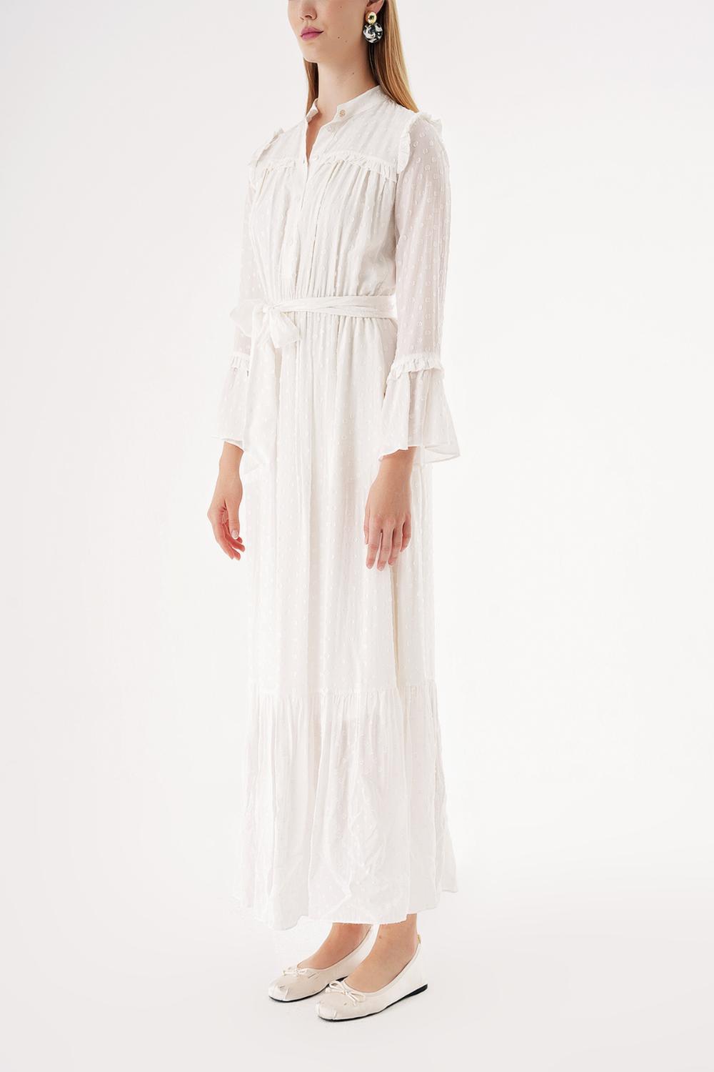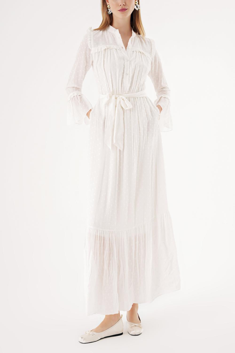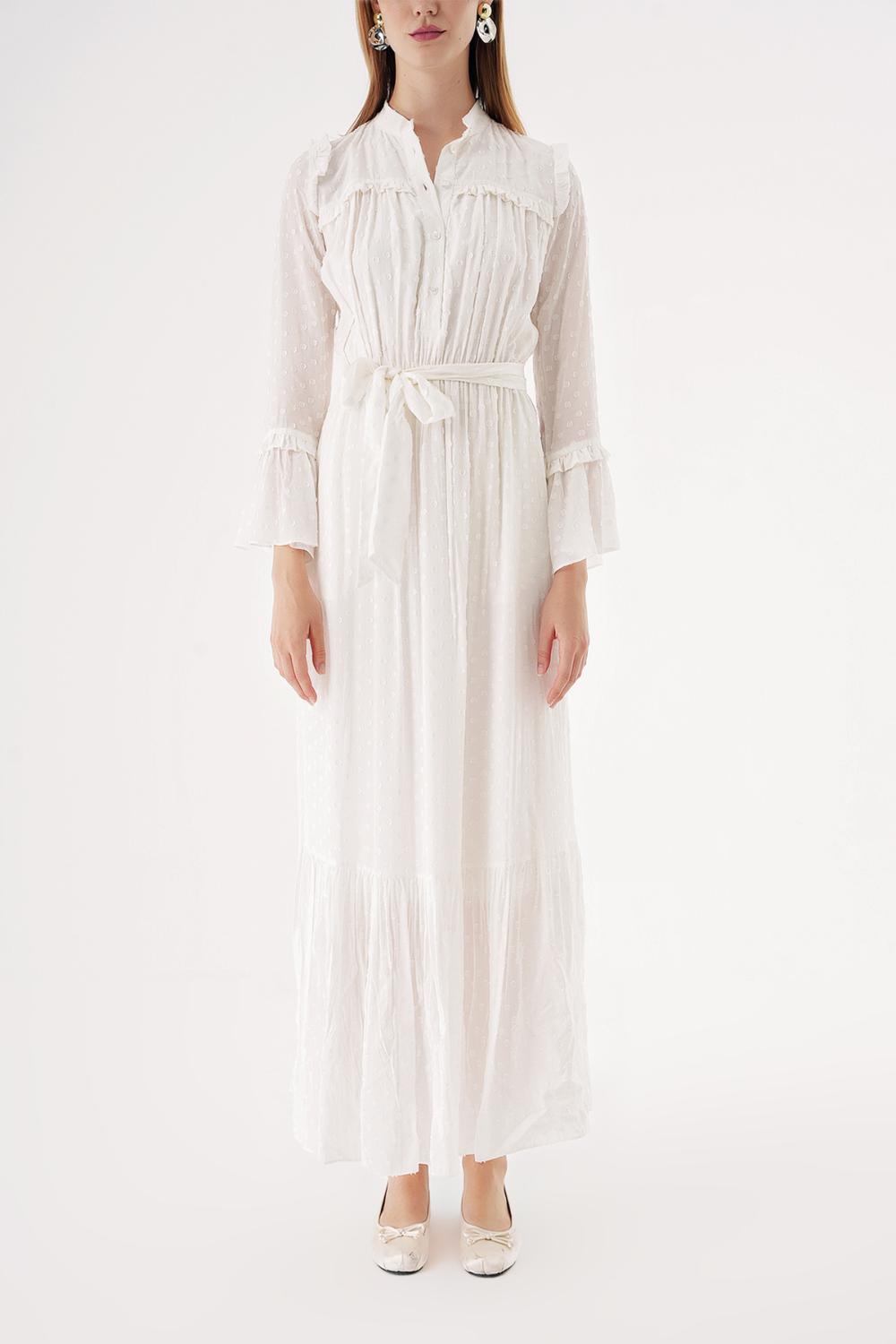 White Long dress with elasticated gathers at the waist 94541