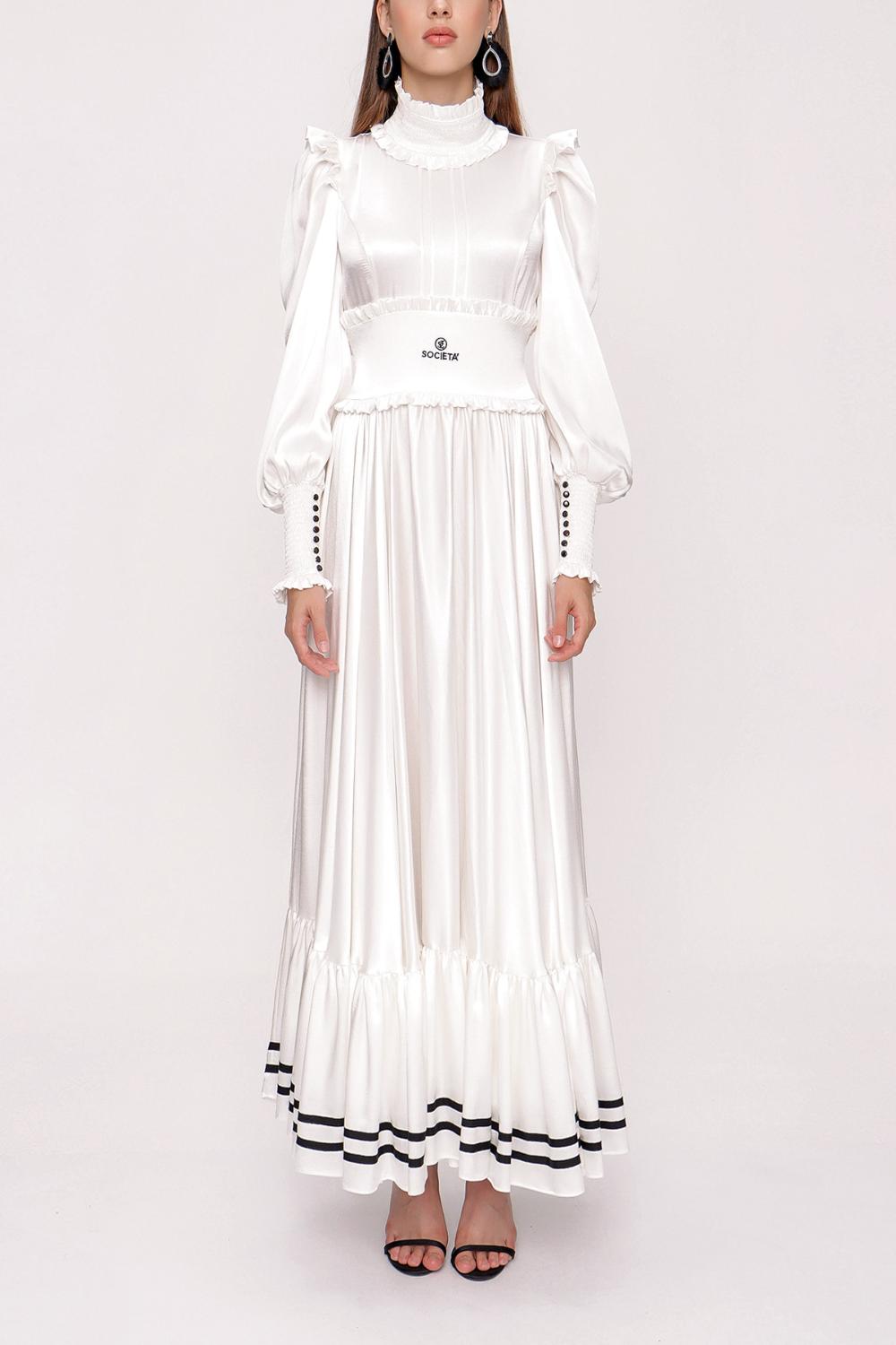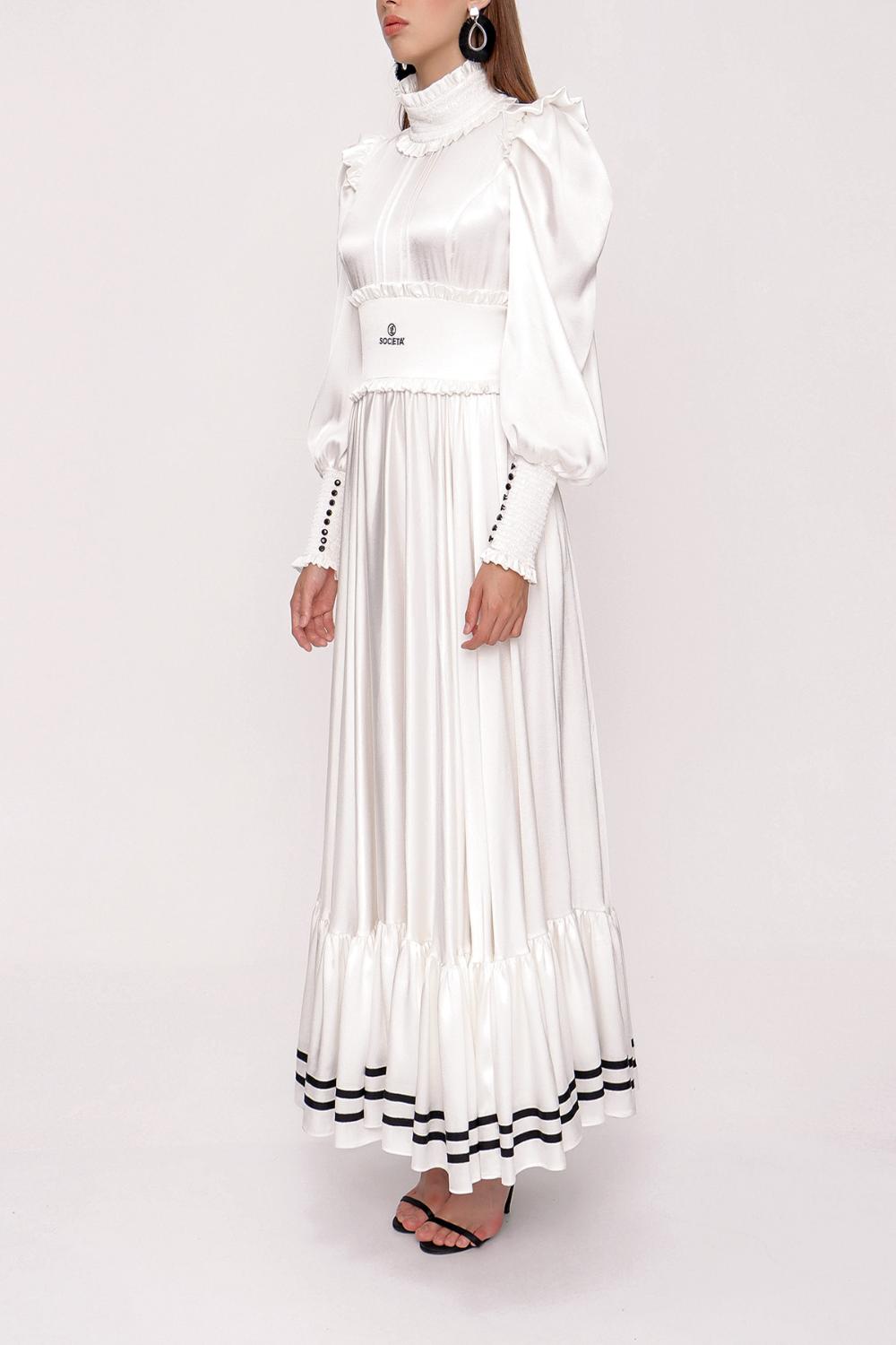 White Long dress with ruffled stripe detail 93999