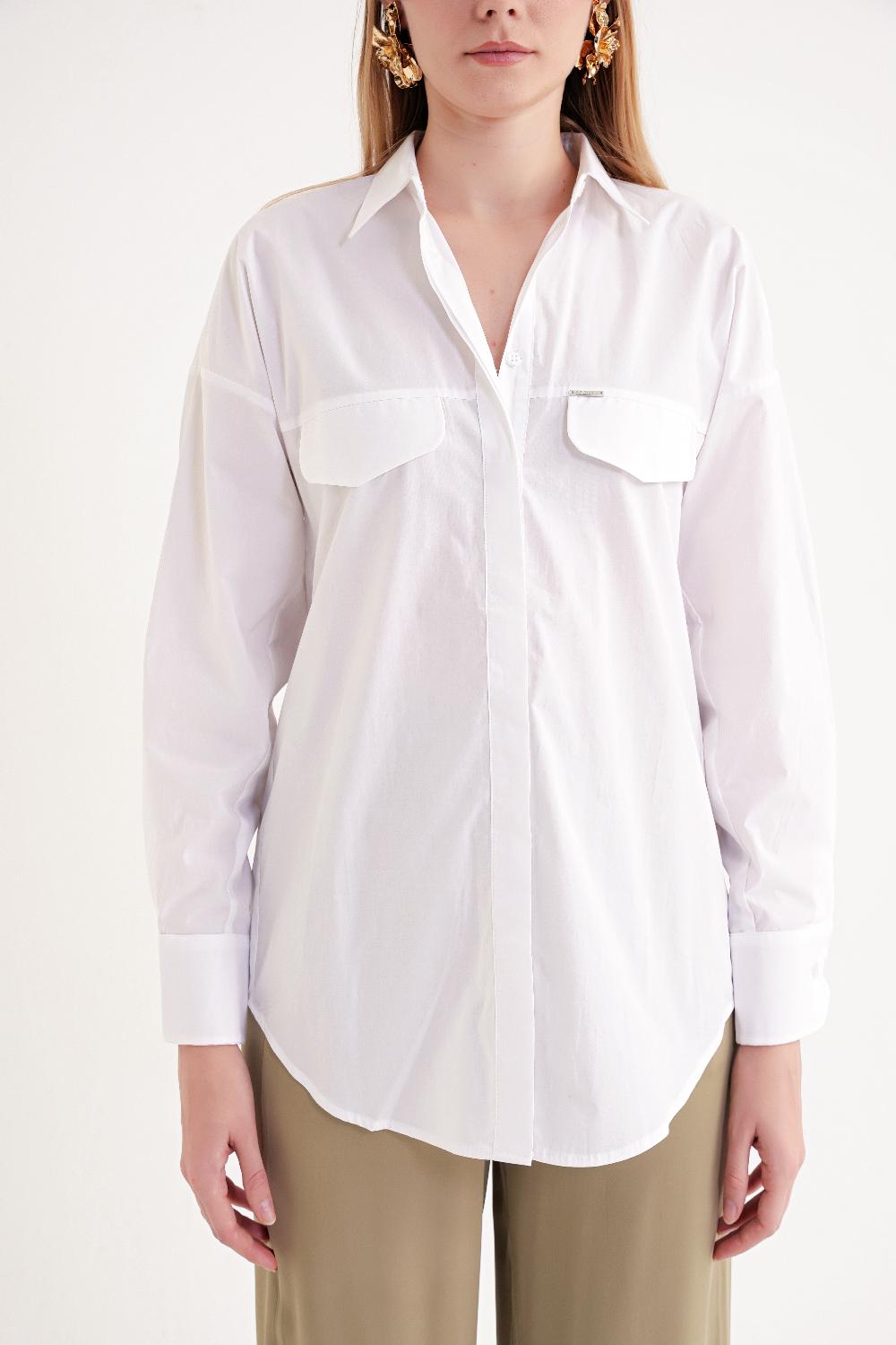 White Loose-fit poplin shirt 10853