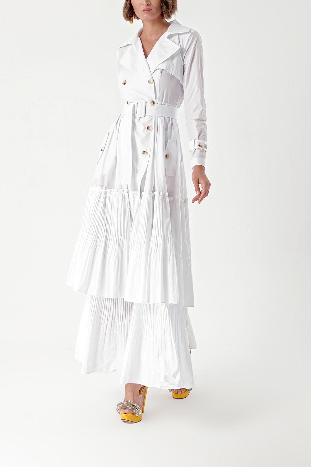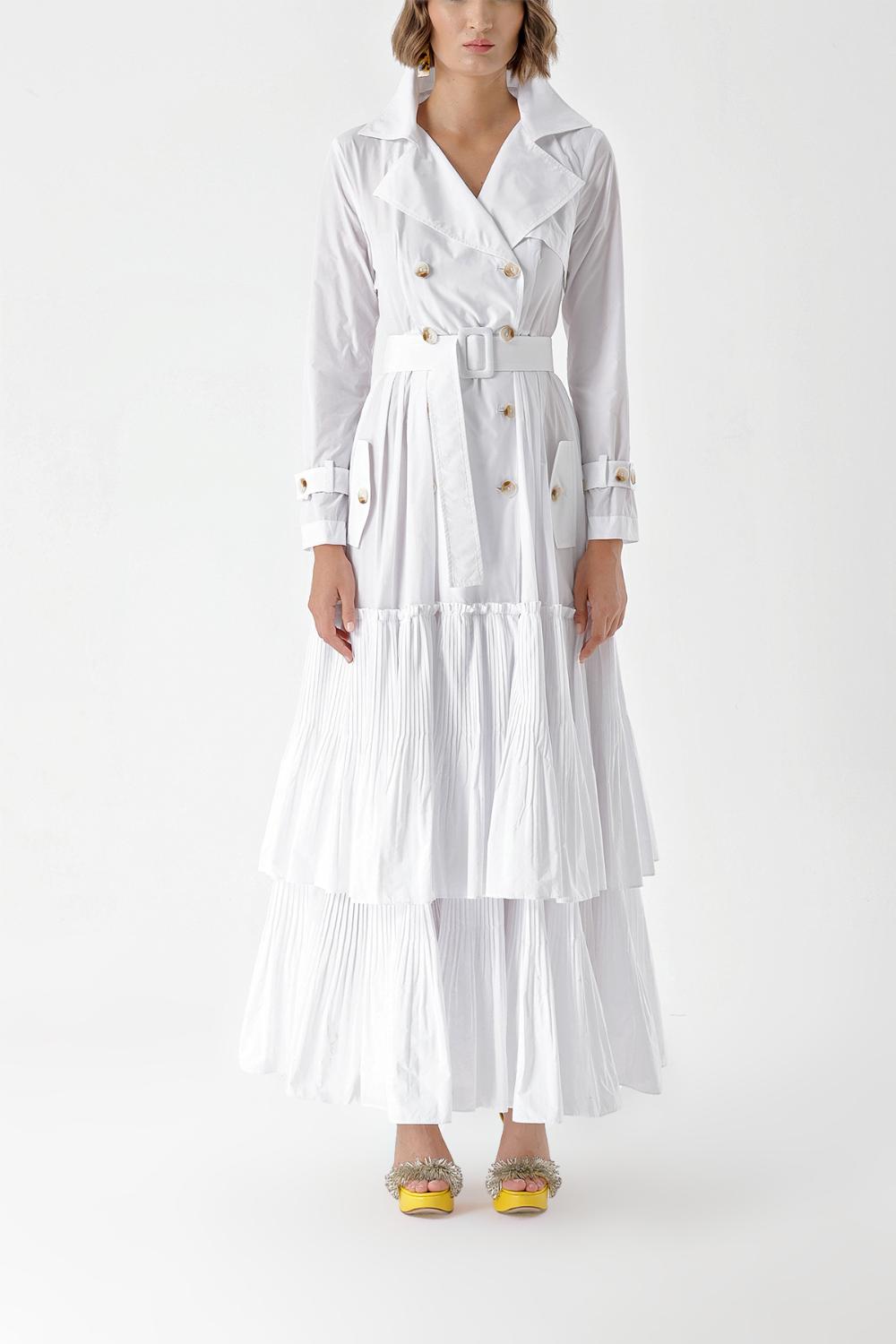 White Pleat detailed trench dress 94285