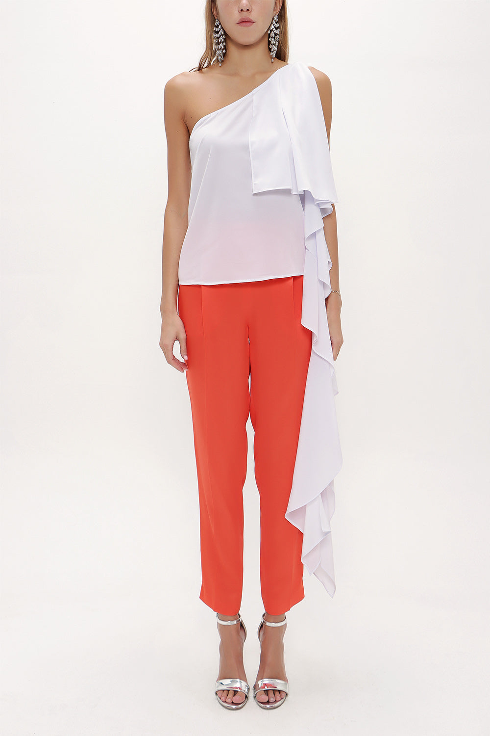 White Ruffled one shoulder blouse 19462