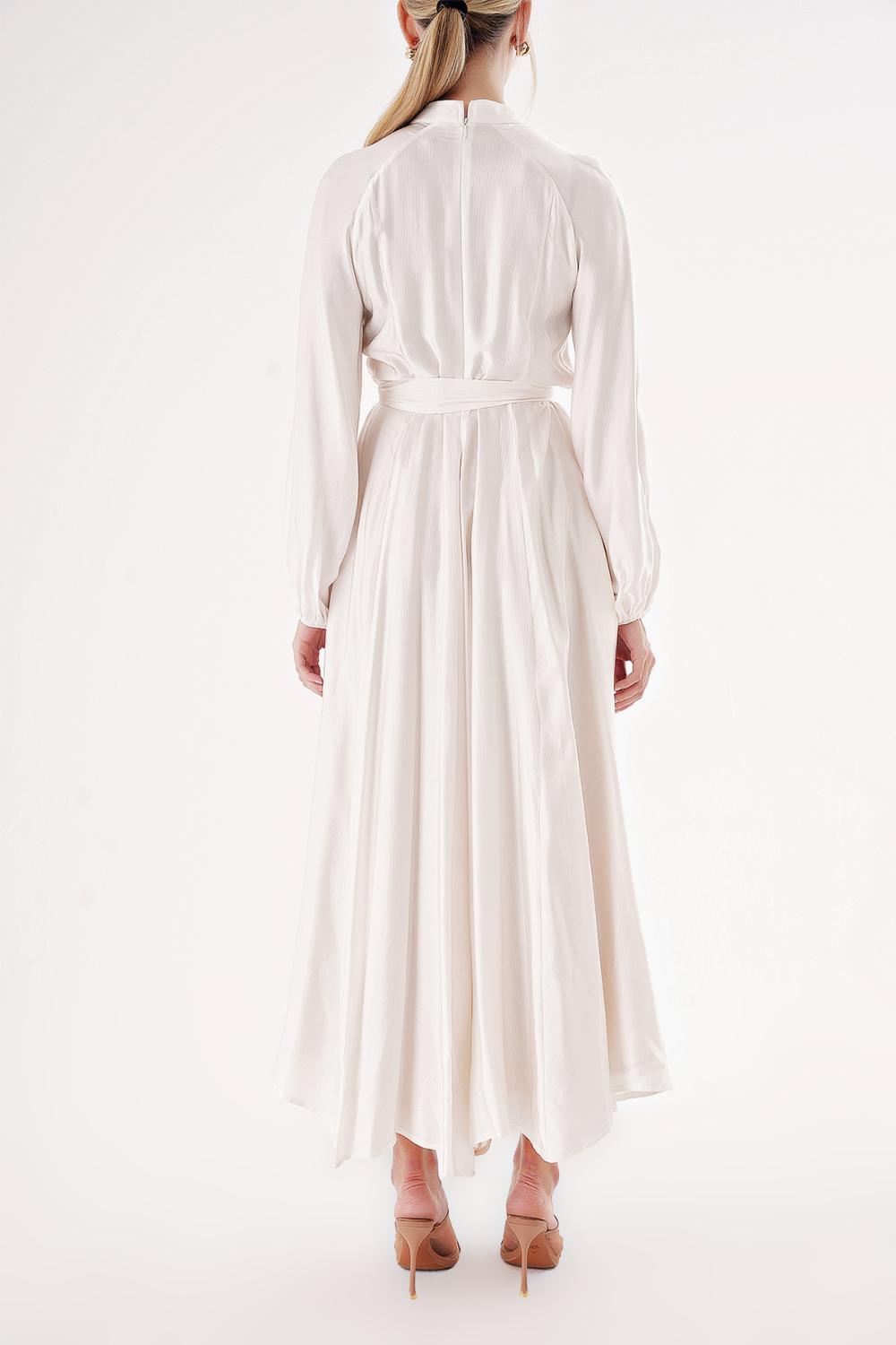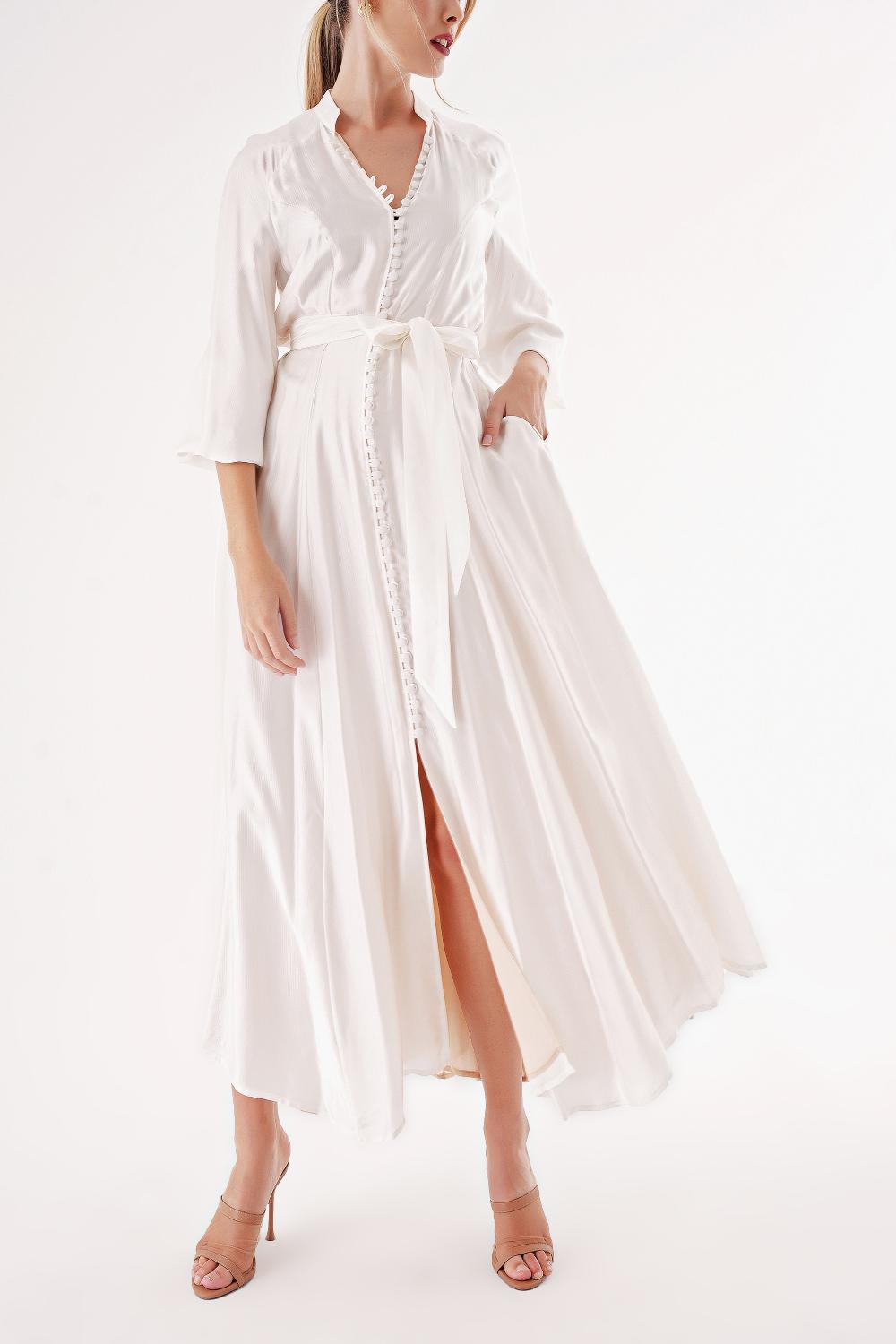 White Shawl collar balloon-sleeved button-up dress 94459