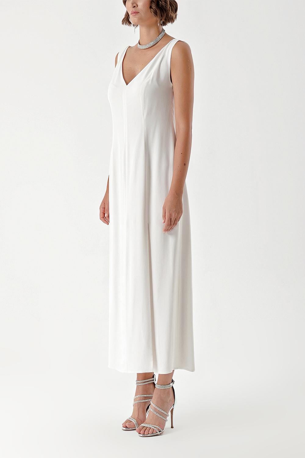 White Sleeveless V-neck slit dress 94217