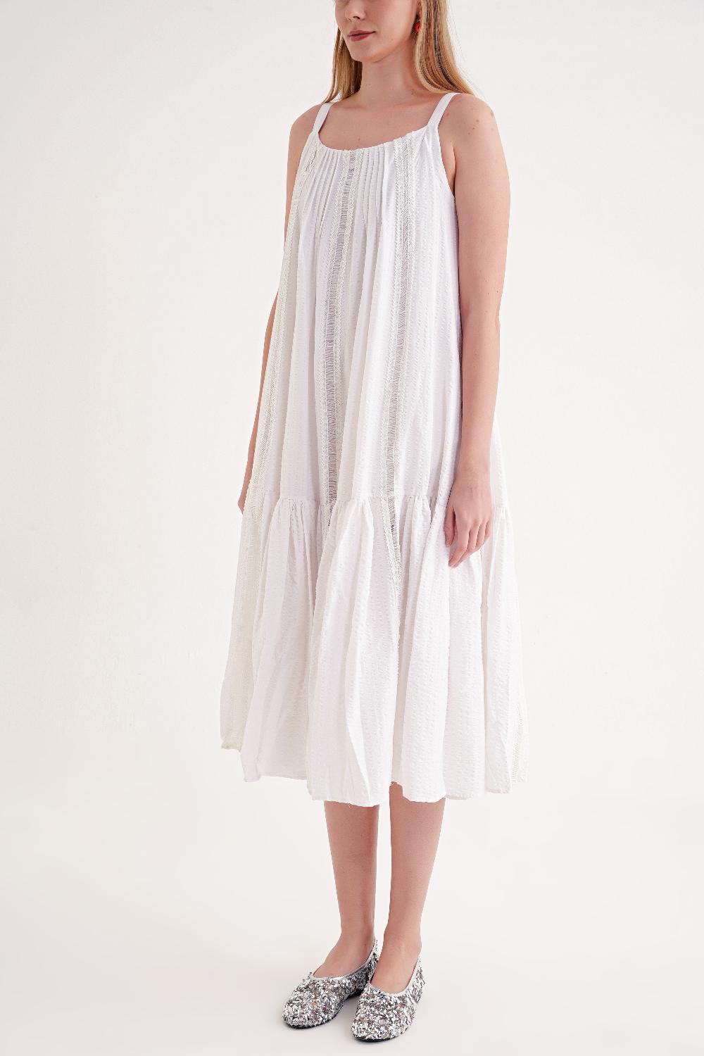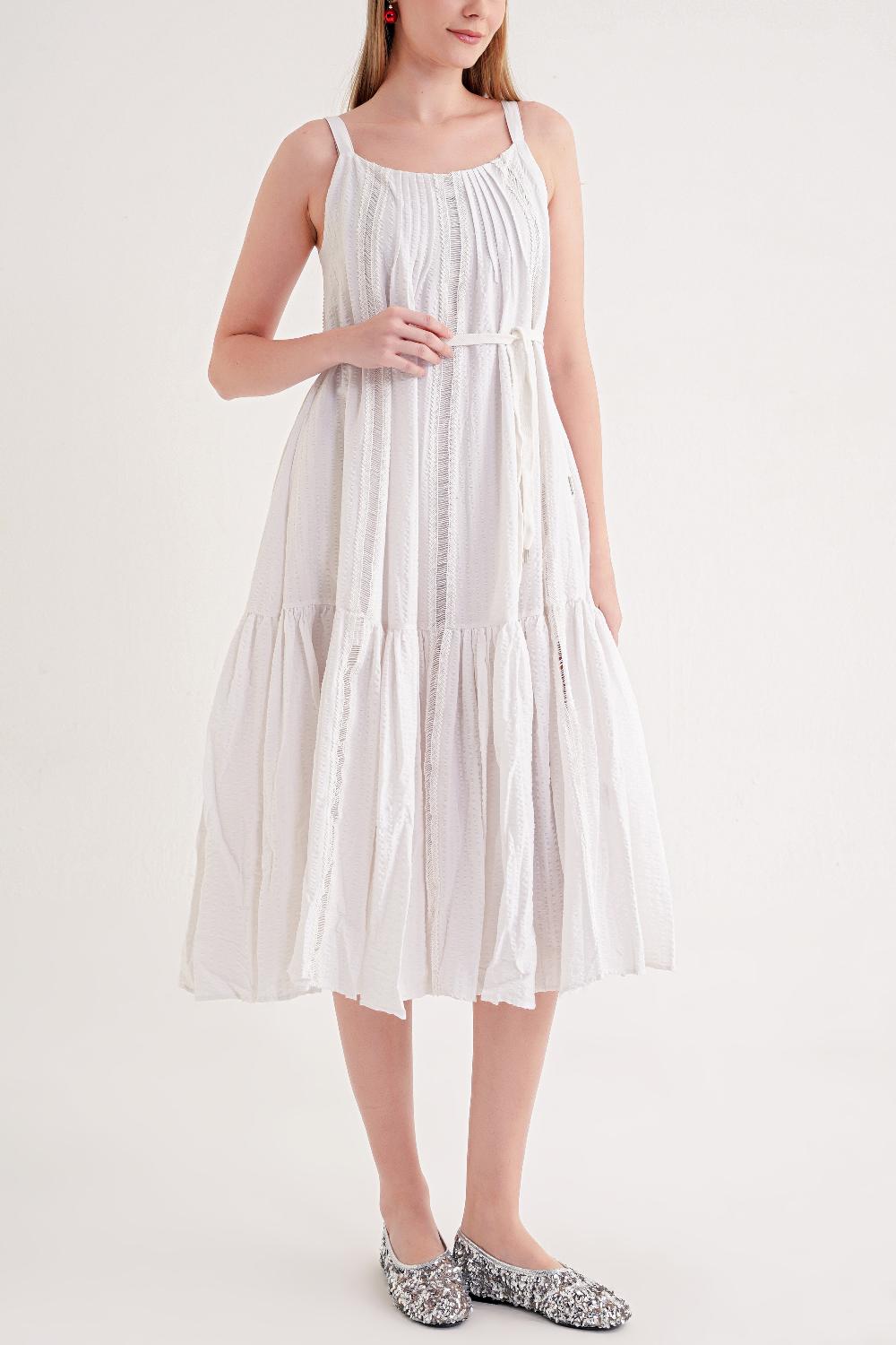 White Sleevless lace vual dress 94351