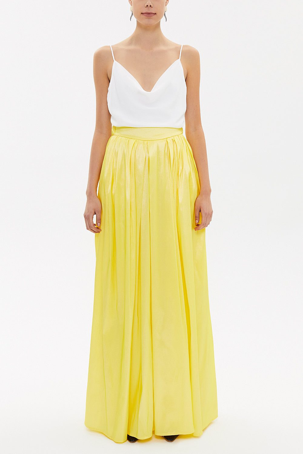 Yellow Elastic and Pleated maxi skirt 81072