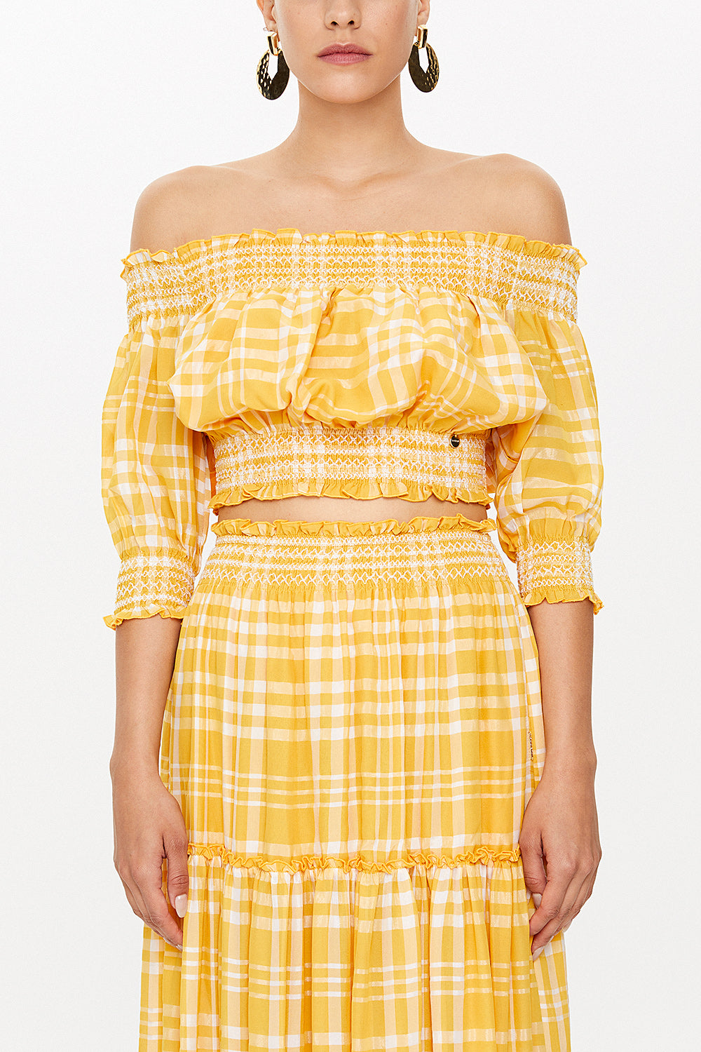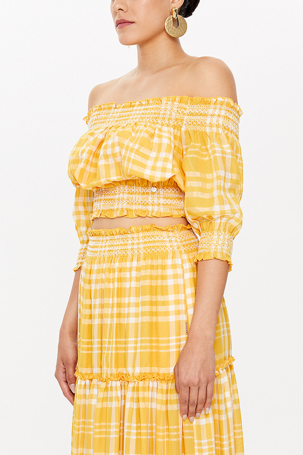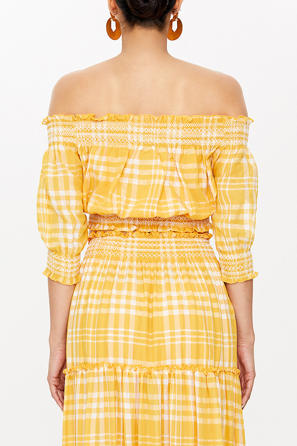 Yellow Elastic short sleeve blouse 19803