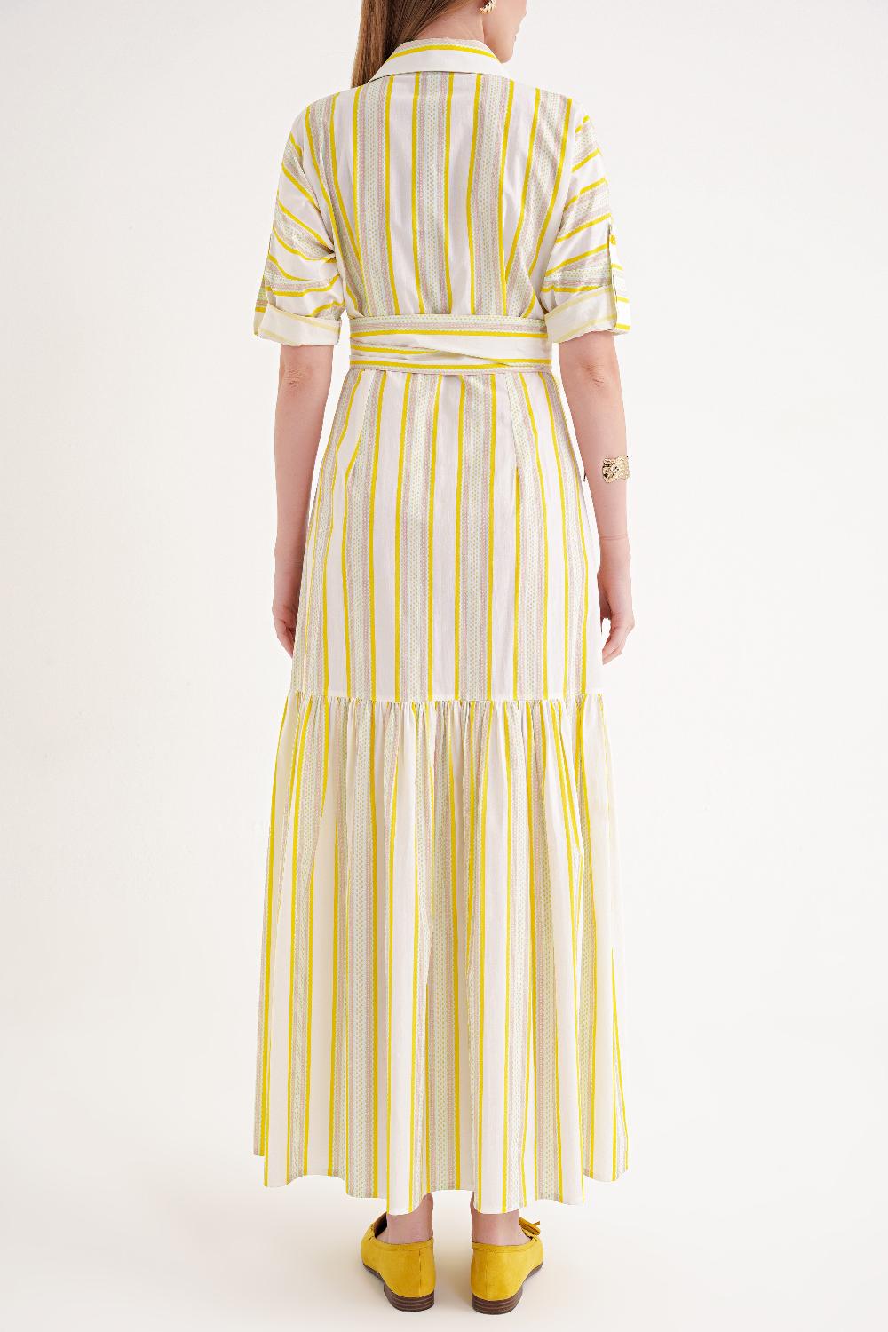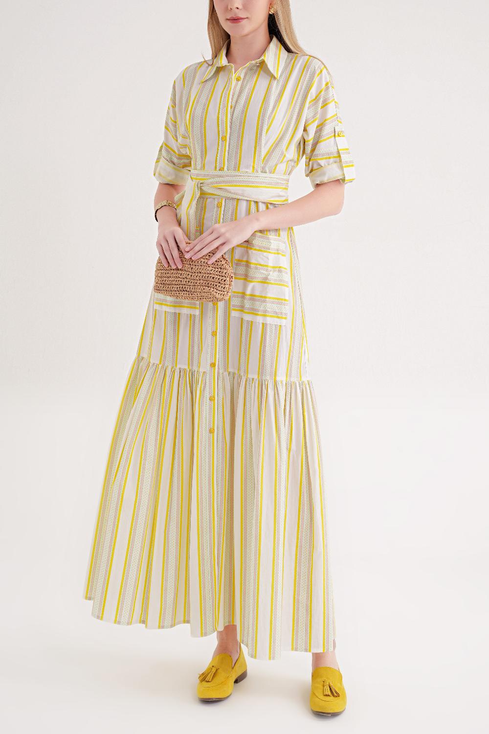 Yellow Gathered long shirt dress 94523