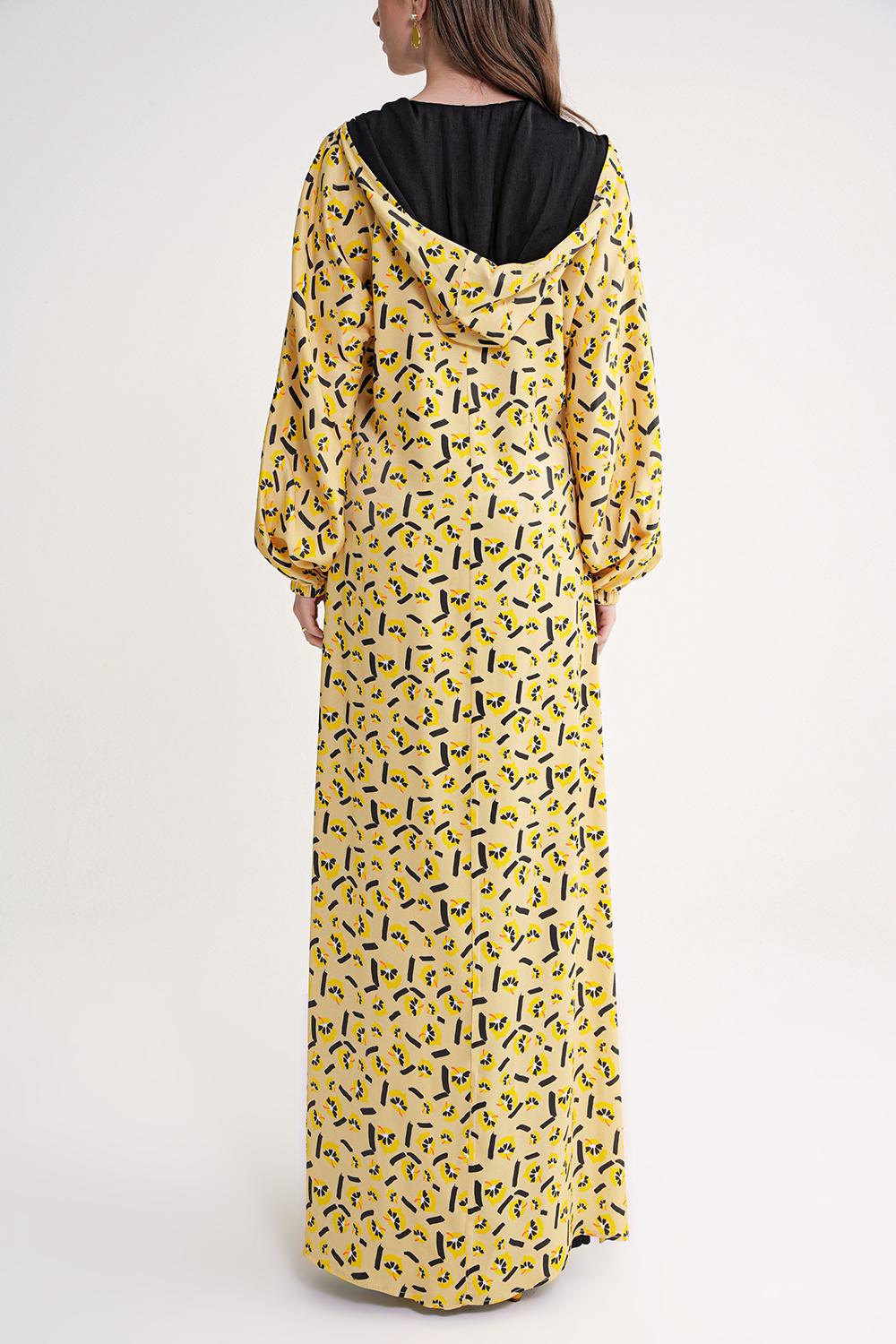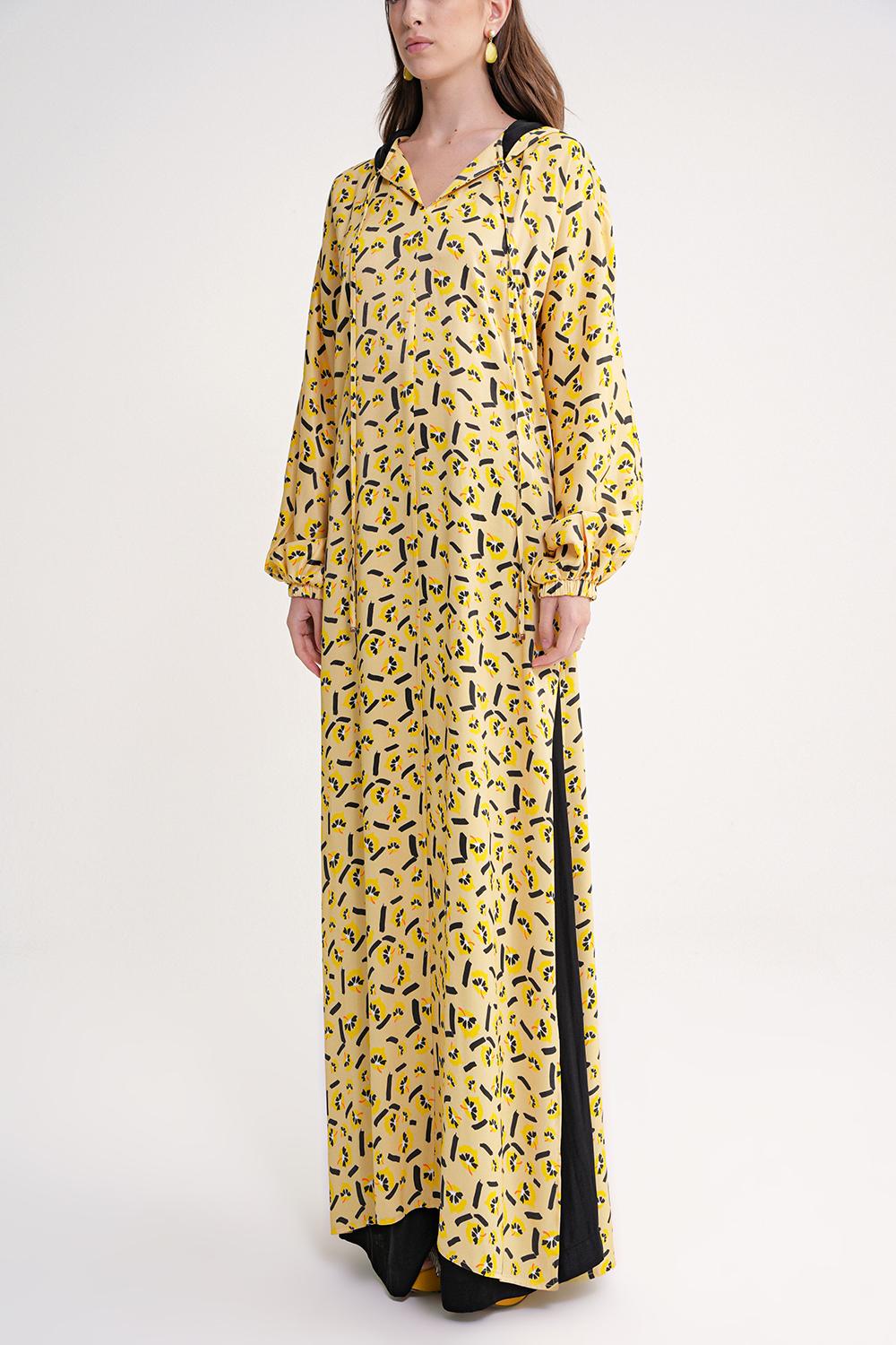 Yellow Hooded tunic with side slits and trouser suit 12363