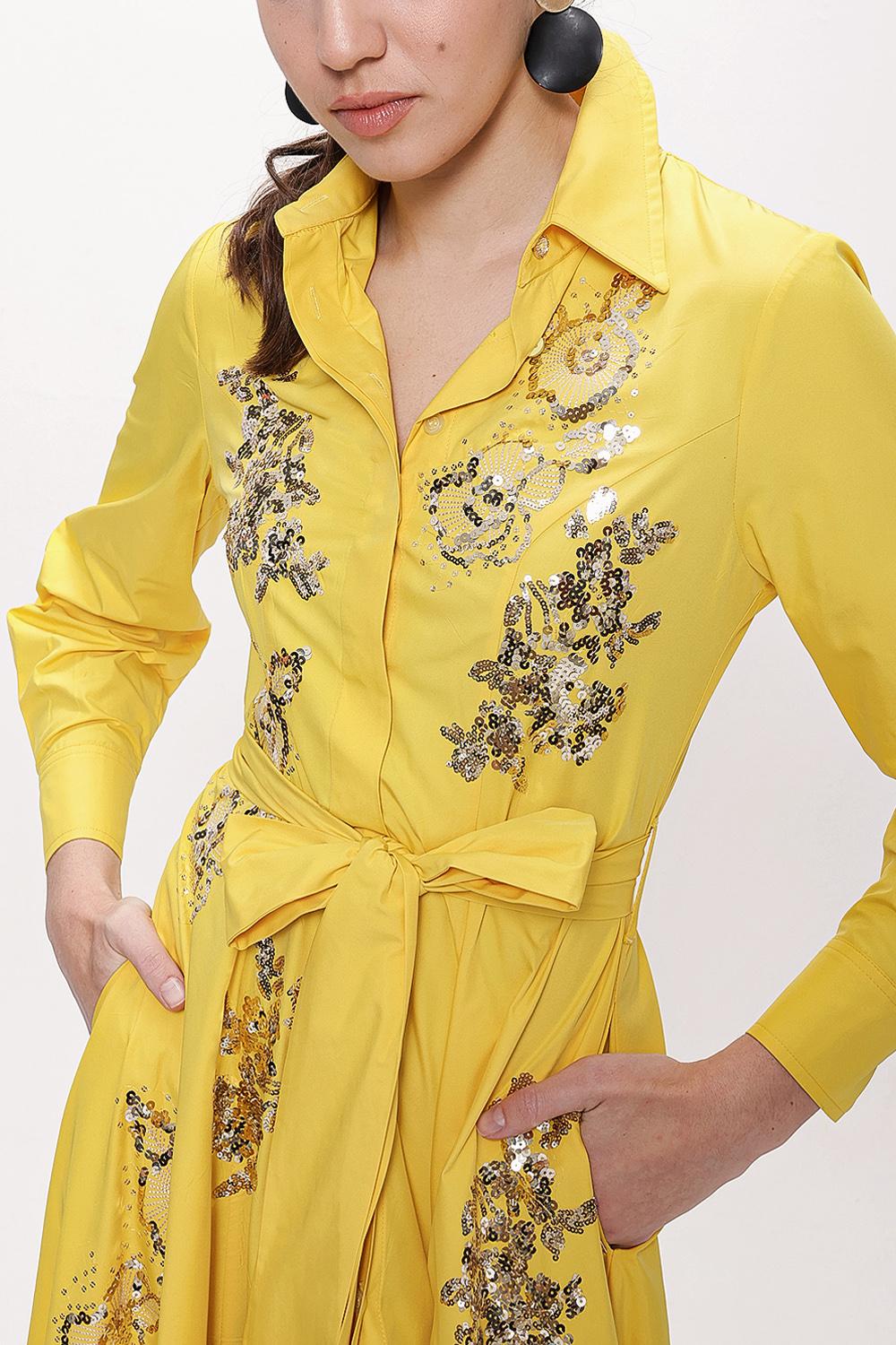 Yellow Sequin embroidered long taffeta shirt dress 94159