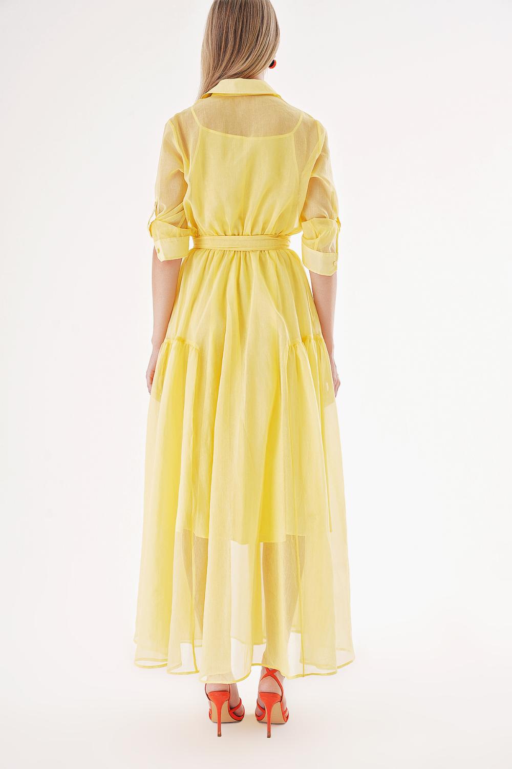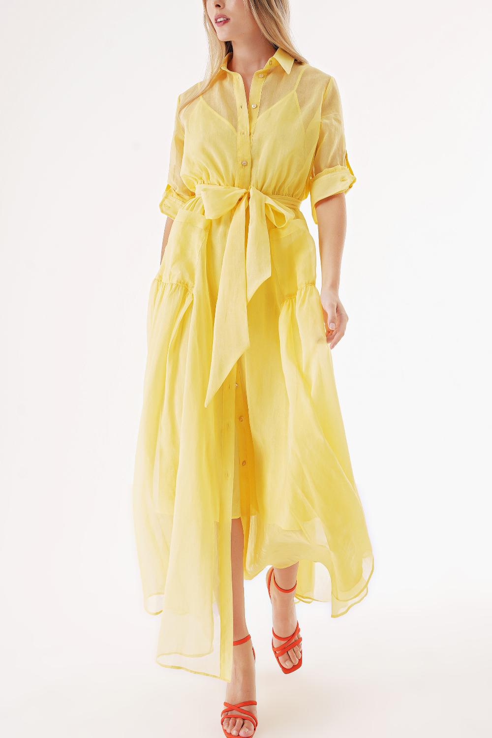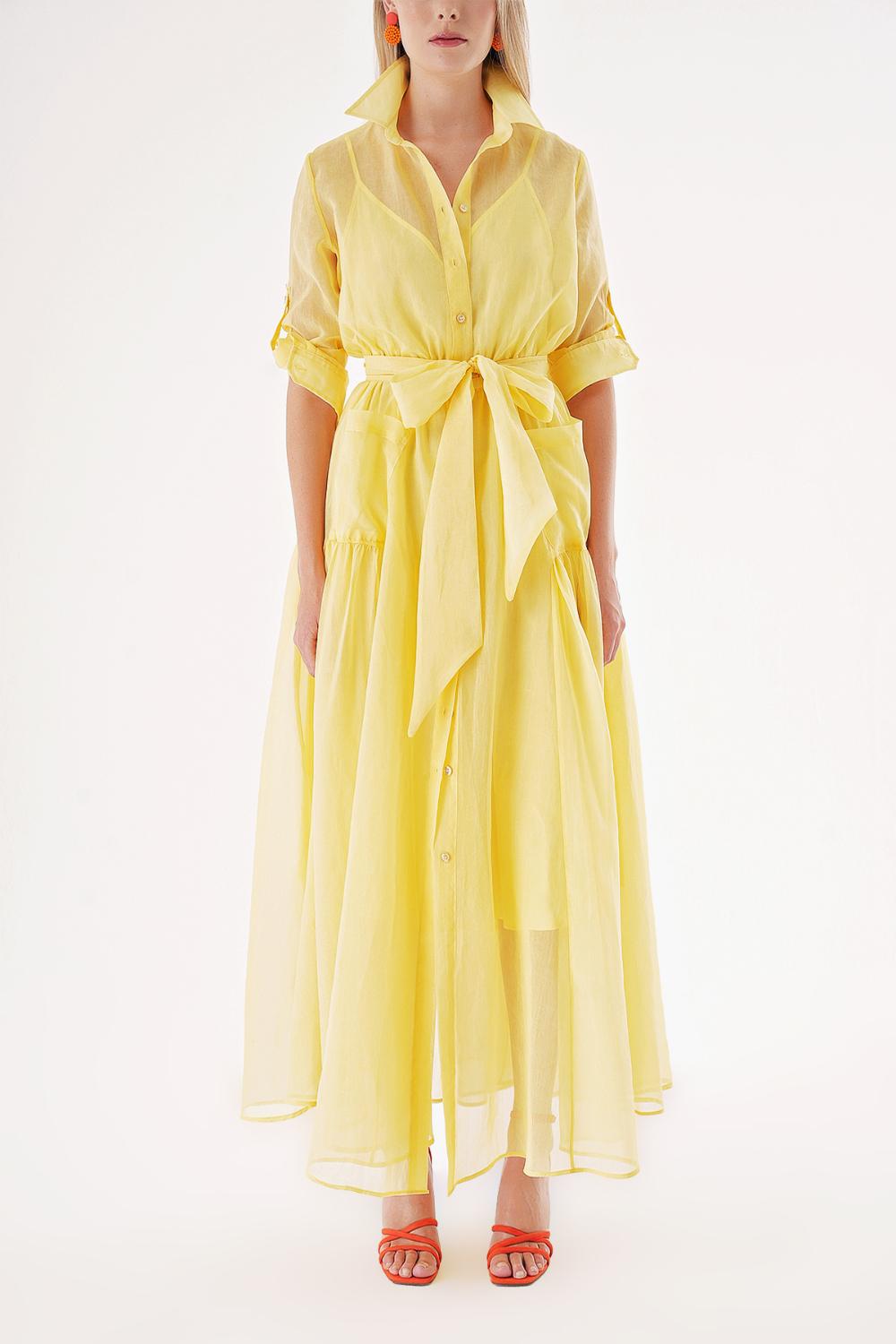 Yellow Taffeta maxi shirt dress 94498