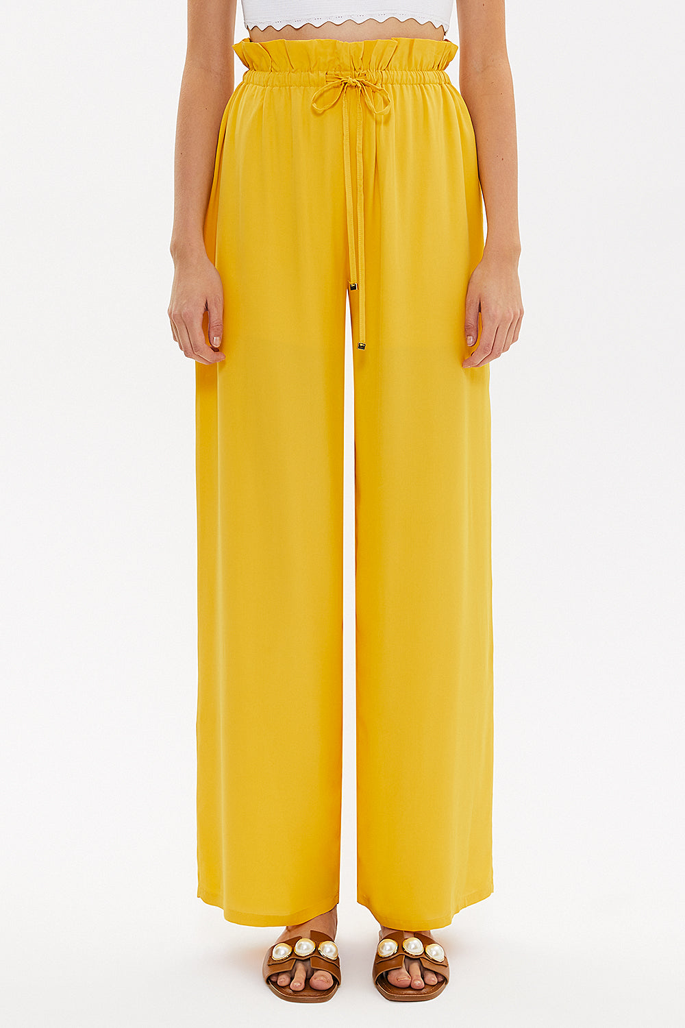 Yellow Wide cut elastic waist pants 41369
