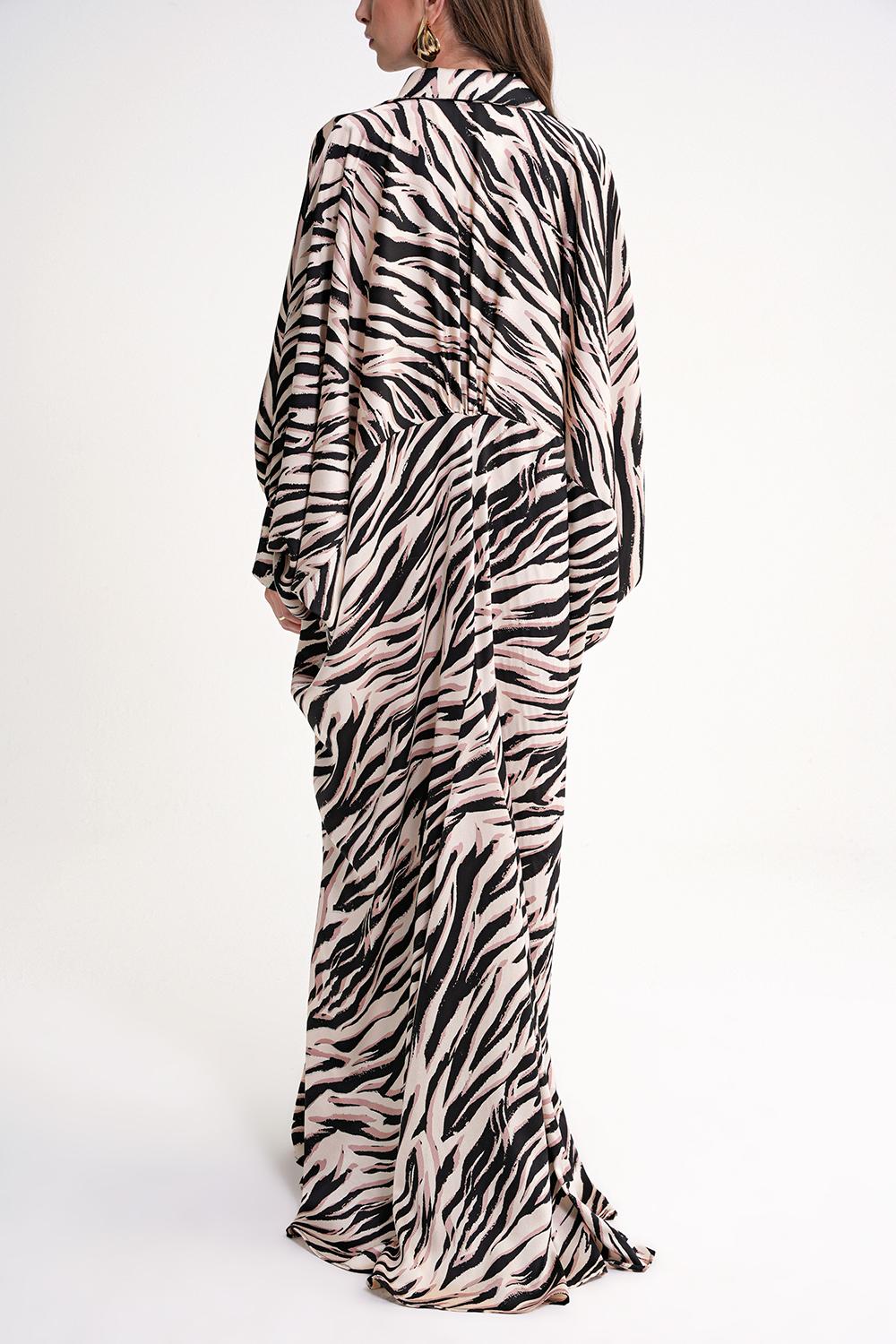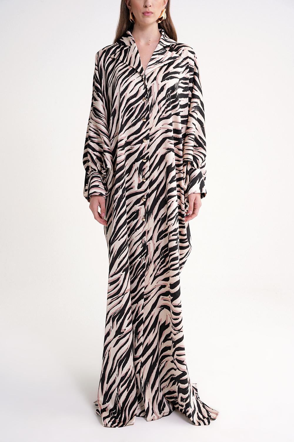 Zebra Pattern Loose-cut long dress with stitching and crystal button detail 94614
